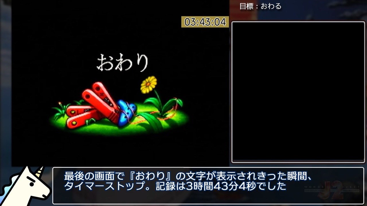 ニンテンドウ64の『ワンダープロジェクトJ2 コルロの森のジョゼット 』のany%RTA、パート8です。<br>2/23で動画投稿を始めて丸2年となりました。いつも応援アリガトナス! 3年目もよろしくオナシャス!<br>今パートは実況少なめです。良いシーンに入れてもノイズになるだけなので。<br><br>完走の感想で話した記事 『スクウェア・エニックスの開発資料を管理する新プロジェクト“SAVE”』<br>→<a href="https://www.famitsu.com/news/202108/25231381.html" target="_blank" rel="noopener nofollow">https://www.famitsu.com/news/202108/25231381.html</a><br><br>J2のチャート&攻略ページ→<a href="https://w.atwiki.jp/nagisa381rta/pages/24.html" target="_blank" rel="noopener nofollow">https://w.atwiki.jp/nagisa381rta/pages/24.html</a><br><br>part.7→<a href="https://www.nicovideo.jp/watch/sm43407322" class="watch">sm43407322</a><br>次作【GB/ファイナルリバース 最後の逆転】→<a href="https://www.nicovideo.jp/watch/sm43528924" class="watch">sm43528924</a>。進捗はTwitter(現:X)@Nagisa381rtaで<br><br>走ったRTAのpart.1まとめ→<a href="https://www.nicovideo.jp/mylist/73222388" target="_blank" rel="noopener">mylist/73222388</a><br>RTA全部まとめ→<a href="https://www.nicovideo.jp/mylist/72786007" target="_blank" rel="noopener">mylist/72786007</a><br><br><u>▽レギュレーション</u><br>タイマー開始:メッセージスピード&バードスピードの画面で『はい』を押した瞬間<br>タイマー終了:エンディングで『終わり』の文字が表示されきった瞬間<br>*今走では連射機は使用していません。ですが腱鞘炎になる(なった)ので使用可とします。<br><br><u>▽縛り(これはレギュレーションに含まない)</u><br>○ジョゼットを故障させずにクリア<br>○できるだけ隠す<br><br>〇Twitter(現:X)→@Nagisa381rta<br><br>〇Youtubeでも活動しているのでチャンネル登録よろしくです<br>→<a href="https://www.youtube.com/channel/UCTNItIdl_gYr9N2j0PO-82g" target="_blank" rel="noopener nofollow">https://www.youtube.com/channel/UCTNItIdl_gYr9N2j0PO-82g</a><br><br>〇欲しいものリスト<br>→<a href="https://www.amazon.jp/hz/wishlist/ls/1S72L30BVRILK?ref_=wl_share" target="_blank" rel="noopener nofollow">https://www.amazon.jp/hz/wishlist/ls/1S72L30BVRILK?ref_=wl_share</a><br><br>〇今までの調査結果や攻略法をまとめた個人wiki(矛盾)を作りました<br>→<a href="https://w.atwiki.jp/nagisa381rta/" target="_blank" rel="noopener nofollow">https://w.atwiki.jp/nagisa381rta/</a><br><br>――――――――――――権利表記――――――――――――<br>© SQUARE ENIX<br>