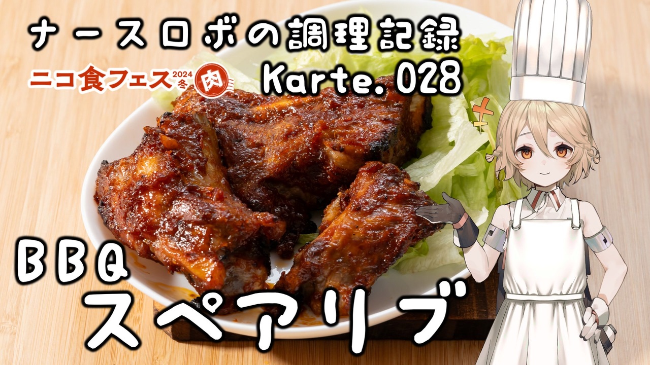第二十八回はB.B.Q.スペアリブ!<br>アメリカンなバーベキューソースを使った料理です!<br>お家だけでなくキャンプでも作れるとっても簡単な一品。<br>ぜひ作ってみてくださいね。<br><br>本動画はニコニコ動画公式主催のニコ食フェス2024冬【肉】に参加しています。<br>企画要項<br>→<a href="https://blog.nicovideo.jp/niconews/214872.html" target="_blank" rel="noopener nofollow">https://blog.nicovideo.jp/niconews/214872.html</a><br>最終結果 18位でした!ありがとうございました!<br>→<a href="https://blog.nicovideo.jp/niconews/216355.html" target="_blank" rel="noopener nofollow">https://blog.nicovideo.jp/niconews/216355.html</a><br><br>ソフリットの作り方はこちらから!<br>→<a href="https://www.nicovideo.jp/watch/sm43249303" class="watch">sm43249303</a><br><br><br>音声: VOICEVOX:ナースロボ_タイプT<br>立ち絵: 捨て犬A<br>イラスト: いらすとや<br>SE: otologic, 効果音ラボ<br>BGM: BGMer<br /><br>[各種リンク]<br>ニコニコ動画: <a href="http://nicovideo.jp/user/130153578" target="_blank" rel="noopener nofollow">http://nicovideo.jp/user/130153578</a><br>YouTubeメイン(料理): <a href="http://youtube.com/@cooking25euph" target="_blank" rel="noopener nofollow">http://youtube.com/@cooking25euph</a><br>YouTubeサブ(料理以外): <a href="https://youtube.com/@sub25euph" target="_blank" rel="noopener nofollow">https://youtube.com/@sub25euph</a><br>X (twitter): <a href="https://twitter.com/nico25euph" target="_blank" rel="noopener nofollow">https://twitter.com/nico25euph</a><br>Bluesky: <a href="http://nico25euph.bsky.social" target="_blank" rel="noopener nofollow">http://nico25euph.bsky.social</a><br>TikTok: <a href="http://tiktok.com/@nico25euph" target="_blank" rel="noopener nofollow">http://tiktok.com/@nico25euph</a>