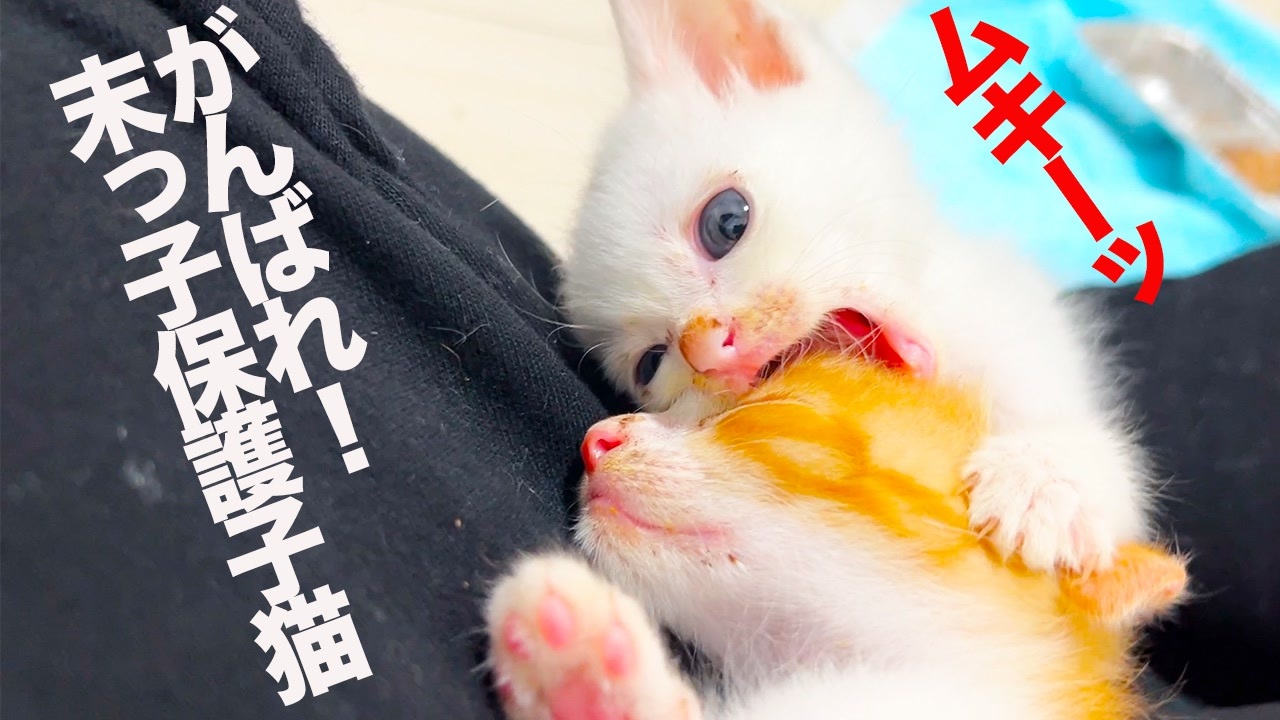 よちよち末っ子保護子猫、食らいついて生きる 5:25