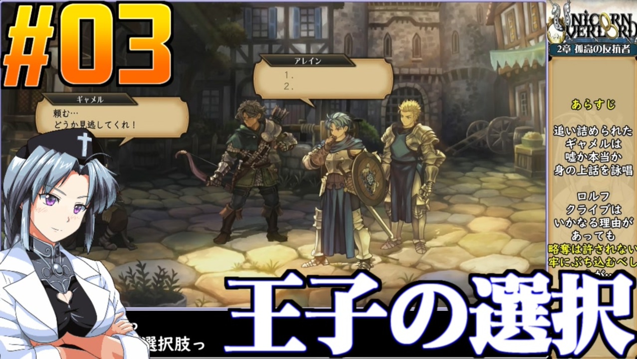 初最近映画で大活躍してそうなトゥトゥヘアー!ではなかった(CV河西健吾)ので初投稿です。<br>2章 孤高の反抗者<br><br>◆ユニコーンオーバーロード(UNICORN OVERLORD)◆<br>©ATLUS ©SEGA<br>開発ヴァニラウェア・販売アトラスの戦術ロールプレイングゲーム。<br>コルニア王家の王子アレインによる故国再興の物語。<br>2024年3月8日発売。<br>桜乃そら実況プレイ動画(ネタバレあり)<br><br>◆ニコニコクリエイターサポート<br><a href="https://creator-support.nicovideo.jp/registration/1203831" target="_blank" rel="noopener nofollow">https://creator-support.nicovideo.jp/registration/1203831</a><br>動画制作の励みになります<br><br>◆Twitter<br><a href="https://twitter.com/ikamono8bit" target="_blank" rel="noopener nofollow">https://twitter.com/ikamono8bit</a><br>◆youtube<br><a href="http://www.youtube.com/c/IkamonoY" target="_blank" rel="noopener nofollow">http://www.youtube.com/c/IkamonoY</a><br><br>シリーズまとめ <a href="https://www.nicovideo.jp/user/1203831/series" target="_blank" rel="noopener nofollow">https://www.nicovideo.jp/user/1203831/series</a><br>作った動画全部 <a href="https://www.nicovideo.jp/mylist/42963985" target="_blank" rel="noopener">mylist/42963985</a><br>作った動画全部2<a href="https://www.nicovideo.jp/mylist/70404393" target="_blank" rel="noopener">mylist/70404393</a>
