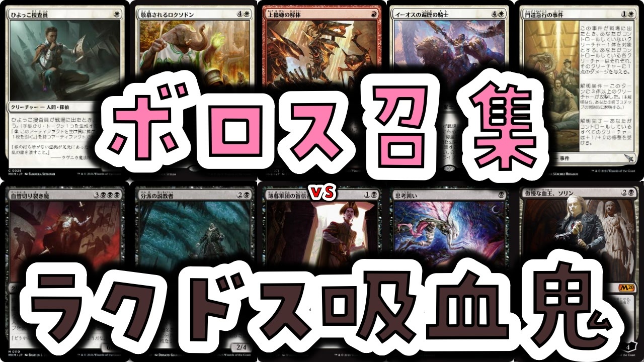 ◆ラクドス吸血鬼vsボロス召集<br><br>♪ luv flow / Flehmann<br><a href="https://youtu.be/dM7bXPa5row" target="_blank" rel="noopener nofollow">https://youtu.be/dM7bXPa5row</a><br><br>♪ Plasma / Hiraoka Kotaro<br><a href="https://audiostock.jp/audio/1224921" target="_blank" rel="noopener nofollow">https://audiostock.jp/audio/1224921</a><br><br>♪ vertex / ISAo<br><a href="https://youtu.be/hBISo6chCg0" target="_blank" rel="noopener nofollow">https://youtu.be/hBISo6chCg0</a><br><br>♪ INNOCENT INSENT / フクロウ<br><a href="https://youtu.be/Q_hSEZJYqvU" target="_blank" rel="noopener nofollow">https://youtu.be/Q_hSEZJYqvU</a><br><br>♪ アレクサンドリアの館 / フクロウ<br><a href="https://youtu.be/7L2fg3zSmFo?si=A3vF5eD9VzvKn_Q5" target="_blank" rel="noopener nofollow">https://youtu.be/7L2fg3zSmFo?si=A3vF5eD9VzvKn_Q5</a><br><br>♪ 10月の彗星、キミと出会う。 / MoGura<br><a href="https://youtu.be/KDWw7T-V3XI?si=tE36BzzwQKQW92o7" target="_blank" rel="noopener nofollow">https://youtu.be/KDWw7T-V3XI?si=tE36BzzwQKQW92o7</a><br><br>♪ 初花と夜風と幼馴染 / MoGura<br><a href="https://youtu.be/g90u9xTLBnY?si=IqTwyPxKEw1SG28v" target="_blank" rel="noopener nofollow">https://youtu.be/g90u9xTLBnY?si=IqTwyPxKEw1SG28v</a><br><br><a href="https://www.nicovideo.jp/watch/sm43428290" class="watch">sm43428290</a>←前 / <a href="https://www.nicovideo.jp/mylist/40655906" target="_blank" rel="noopener">mylist/40655906</a> / 次→<a href="https://www.nicovideo.jp/watch/sm43471758" class="watch">sm43471758</a>