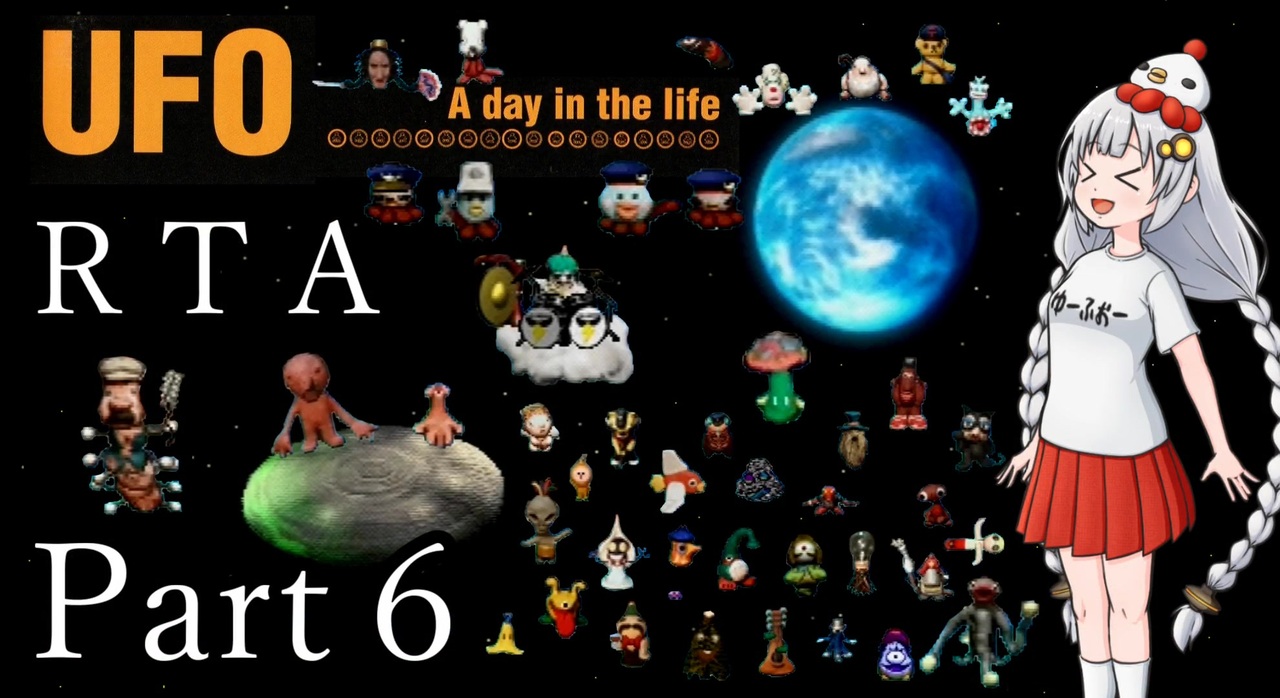 PlayStationゲーム「UFO -A day in the life-」RTAです。<br>個性的な宇宙人達と個性的な住人達の一日を楽しんでもらえると嬉しいです。<br><br>前:<a href="https://www.nicovideo.jp/watch/sm43459332" class="watch">sm43459332</a><br>次:<a href="https://www.nicovideo.jp/watch/sm43464683" class="watch">sm43464683</a><br><br>■計測区間<br>「はじめましてを選択」から「UFO帰還後の暗転」まで<br><br>■動画作成にあたり<br>・あかりちゃんイラスト<br>mobushiさん:<a href="https://twitter.com/mobushi" target="_blank" rel="noopener nofollow">https://twitter.com/mobushi</a><br>・音声ソフト<br>VOICEROID2 紲星あかり<br><br>■全編ぶっ通し(無編集)<br><a href="https://youtu.be/HTaZszMwxQA" target="_blank" rel="noopener nofollow">https://youtu.be/HTaZszMwxQA</a><br><br>■X(Twitter)<br>やまのひ:<a href="https://twitter.com/bergtag0811" target="_blank" rel="noopener nofollow">https://twitter.com/bergtag0811</a><br>