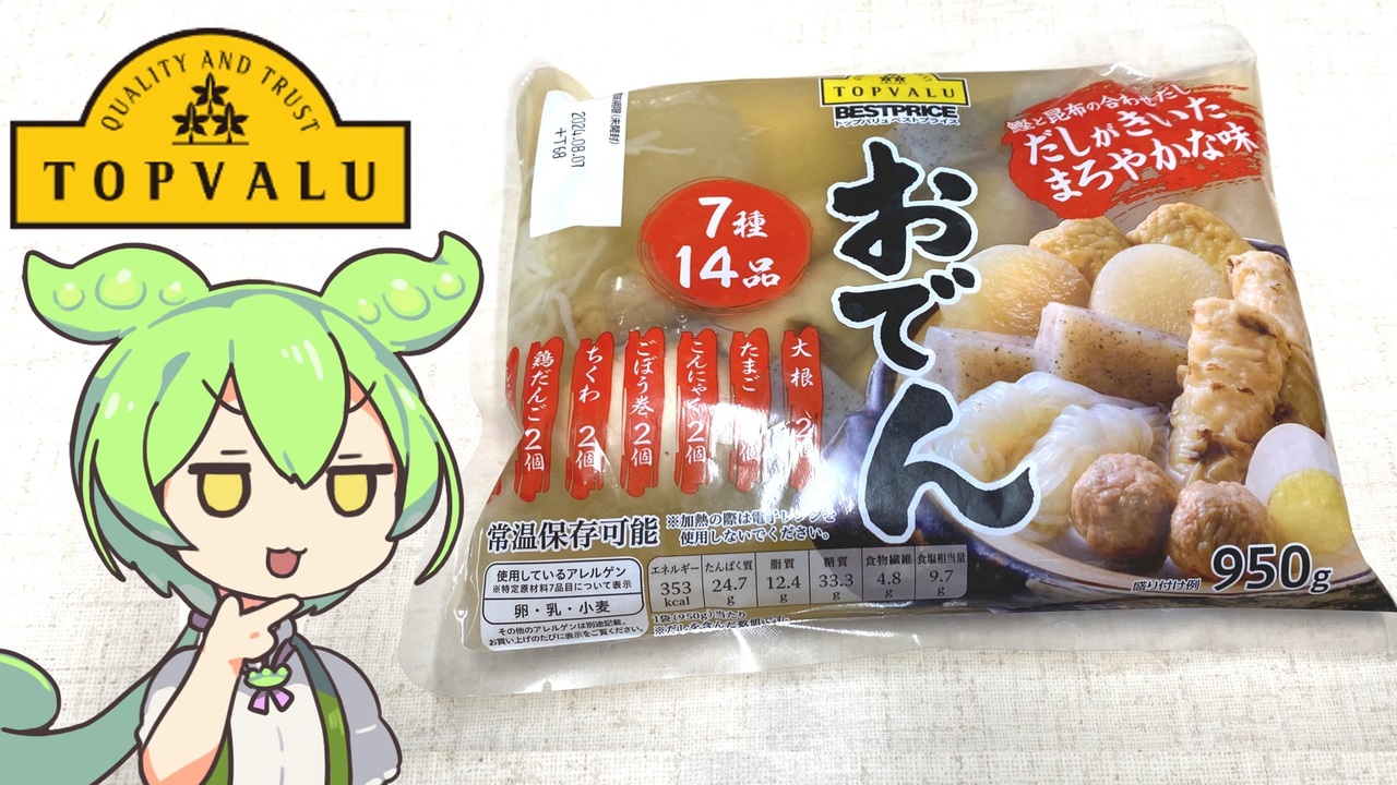 約1年前に食べたトップバリュのおでんですが、昨年リニューアルをしたようです。<br>味はどうなっているでしょうか。<br><br><br>【関連動画】<br>お花見にいかが?トップバリュ(黄色)の「おでん」<br><a href="https://www.youtube.com/watch?v=dc-jTxCKmCo" target="_blank" rel="noopener nofollow">https://www.youtube.com/watch?v=dc-jTxCKmCo</a><br><br>【参考】<br>おでん7種14品(トップバリュ)※今回のおでん<br><a href="https://www.topvalu.net/items/detail/4549414101133/" target="_blank" rel="noopener nofollow">https://www.topvalu.net/items/detail/4549414101133/</a><br>おでん7種7品(トップバリュ)※1人用おでん<br><a href="https://www.topvalu.net/items/detail/4549414101126/" target="_blank" rel="noopener nofollow">https://www.topvalu.net/items/detail/4549414101126/</a><br>献立いろいろみそ(イチビキ株式会社)<br><a href="https://www.ichibiki.co.jp/brand/kondate-miso/" target="_blank" rel="noopener nofollow">https://www.ichibiki.co.jp/brand/kondate-miso/</a><br>紀文アカデミー おでん教室(株式会社紀文食品)<br><a href="https://www.kibun.co.jp/knowledge/oden/data/jikken/index.html" target="_blank" rel="noopener nofollow">https://www.kibun.co.jp/knowledge/oden/data/jikken/index.html</a><br><br>【使用した素材】(※敬称略)<br>(合成音声)VOICEVOX/ずんだもん/四国めたん<br><a href="https://voicevox.hiroshiba.jp/" target="_blank" rel="noopener nofollow">https://voicevox.hiroshiba.jp/</a><br>(立ち絵)坂本アヒル<br><a href="https://seiga.nicovideo.jp/seiga/im10788496" target="_blank" rel="noopener">im10788496</a>/<a href="https://seiga.nicovideo.jp/seiga/im10791276" target="_blank" rel="noopener">im10791276</a><br>(楽曲)甘茶の音楽工房/「楽しい麦畑」「フルーツパフェ」「お城の舞踏会」<br><a href="https://amachamusic.chagasi.com/" target="_blank" rel="noopener nofollow">https://amachamusic.chagasi.com/</a>