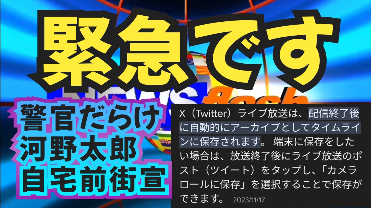 <br>河野太郎自宅前街宣ライブ <br>つばさの党、黒川敦彦さんたちが、河野太郎自宅前に集まっています<br>20人くらいの警官が自宅前で妨害してます←30名だったらしいw<br>Xアカウントがある人は、生中継が無料で見られます<br>さすが河野太郎大臣<br>多勢の警官を集めています<br>行けばよかった<br><br><br>河野太郎自宅前、ワクチン超過死亡に対する抗議街宣<br>警察30人ぐらいいて、ここで街宣はできないと言われ、バトルになった。権力者を守り、ワクチン超過死亡を封殺する、神奈川県警<br><br>⬇⬇⬇⬇⬇⬇⬇⬇⬇⬇⬇⬇⬇⬇⬇⬇⬇⬇⬇⬇⬇⬇⬇⬇⬇⬇⬇⬇<br><a href="https://twitter.com/democracymonst/status/1763814822460932495?t=tkgRUwxSi_-sv_DukSY5VA&s=19" target="_blank" rel="noopener nofollow">https://twitter.com/democracymonst/status/1763814822460932495?t=tkgRUwxSi_-sv_DukSY5VA&s=19</a><br><br><br>街宣活動は終わっていますがURLから見られます<br>YouTubeでは即banな内容<br><br><br>正しいことを発信すると握りつぶされる国<br>そんな国のデジタル大臣<br>警官を30人近く動員させる<br><br><br>黒川さん<br><a href="https://twitter.com/democracymonst/status/1763785656416043139?t=AdrU0pARVVmyEx7FjFnBhQ&s=19" target="_blank" rel="noopener nofollow">https://twitter.com/democracymonst/status/1763785656416043139?t=AdrU0pARVVmyEx7FjFnBhQ&s=19</a><br><br><br>杉田さん<br><a href="https://twitter.com/soka463987/status/1763790035047121321?t=hfWDFbUi8bH7tww7hLLArQ&s=19" target="_blank" rel="noopener nofollow">https://twitter.com/soka463987/status/1763790035047121321?t=hfWDFbUi8bH7tww7hLLArQ&s=19</a><br><br><br>河野太郎 デマ太郎 デジタル大臣 警官だらけ 街宣活動 ワクチン 新型コロナウイルス コロナワクチン 超過死亡 突然死 言論弾圧 言論統制 世論誘導 検閲 重症化を防ぐ 感染予防効果 免疫力低下 自己免疫疾患 2億人打って死者数0 デマ ブロック 神奈川県警 日本端子 コオロギ マイナンバーカード マイナ保険証 ワクチン薬害 ワクチン被害 ワクチン後遺症 警備に多勢の警察官 税金の無駄使い 中国共産党 河野談話 河野洋平 世襲議員 自民党 売国議員 ダボス会議 グローバリスト 世界経済フォーラム 創価学会 つばさの党 黒川敦彦 河野太郎自宅前街宣 新しい国民の運動<br><br><br><br><br><br><br><br />著作権、肖像権に配慮して作成しております。<br><br>◆気になったニュースの台本!?<br>メモ代わりに作った台本をそのままあげてます<br><a href="https://keiichiro8140.hatenablog.com/." target="_blank" rel="noopener nofollow">https://keiichiro8140.hatenablog.com/.</a><br><br><br>ここからはシリーズ紹介<br><br><br>◆ ワクチン解毒・デトックス<br><a href="https://x.gd/fZweg" target="_blank" rel="noopener nofollow">https://x.gd/fZweg</a><br><br>◆ウイリアム・マキス博士のがん治療(イベルメクチン・フェンベンダゾール等)<br><a href="https://x.gd/AtFYS" target="_blank" rel="noopener nofollow">https://x.gd/AtFYS</a><br><br>◆予防接種健康被害救済制度<br><a href="https://x.gd/0xK9x" target="_blank" rel="noopener nofollow">https://x.gd/0xK9x</a><br><br>◆気になったニュース #1501~<br><br>◆ 【ショートver】気になったニュース<br><a href="https://x.gd/7MxXC" target="_blank" rel="noopener nofollow">https://x.gd/7MxXC</a><br><br>◆ 気になったニュース #1001~<br><a href="https://x.gd/Lp8gv" target="_blank" rel="noopener nofollow">https://x.gd/Lp8gv</a><br><br>◆ 気になったニュース #501~<br><a href="https://x.gd/EmbS4" target="_blank" rel="noopener nofollow">https://x.gd/EmbS4</a><br><br>◆ 気になったニュース #1~#500<br><a href="https://x.gd/uPhNb" target="_blank" rel="noopener nofollow">https://x.gd/uPhNb</a><br><br>◆ X(旧Twitter)・テレグラムで気になった情報<br><a href="https://x.gd/YG6FT" target="_blank" rel="noopener nofollow">https://x.gd/YG6FT</a><br><br>◆ 日比谷5万人パレードデ⚪生放送アーカイブ動画<br><a href="https://x.gd/3CHJv" target="_blank" rel="noopener nofollow">https://x.gd/3CHJv</a><br><br>◆日比谷5万人パレード⚪モのマイリスト作ってみました<br><a href="https://nico.ms/mylist/76828848?ref=sp_other" target="_blank" rel="noopener nofollow">https://nico.ms/mylist/76828848?ref=sp_other</a><br><br>◆3.30 令和の百姓⚪⚪<br><a href="https://www.nicovideo.jp/series/511791?ref=garage_share_other" target="_blank" rel="noopener nofollow">https://www.nicovideo.jp/series/511791?ref=garage_share_other</a><br><br>◆ 及川幸久さんの【XNEWS】シリーズ<br><a href="https://x.gd/3k78K" target="_blank" rel="noopener nofollow">https://x.gd/3k78K</a><br><br>◆これまでの動画<a href="https://x.gd/sPXoJ" target="_blank" rel="noopener nofollow">https://x.gd/sPXoJ</a><br><br>◆もしも(BAN)の時のためのマイリンク集<a href="https://lit.link/K-16_News44" target="_blank" rel="noopener nofollow">https://lit.link/K-16_News44</a><br><br>