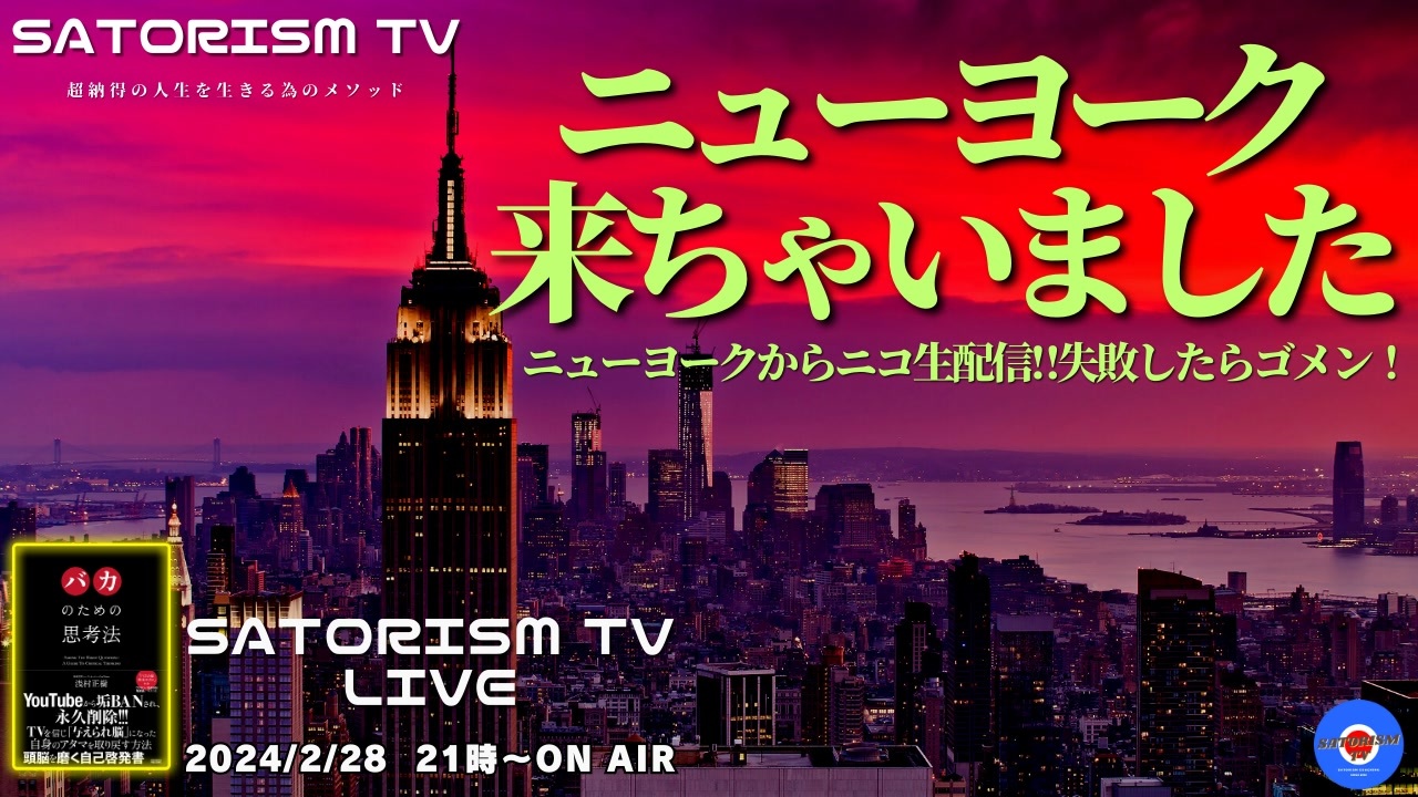 最新情報<br>♡NEW!!有料会員制「SATORISM GOLDEN TV」リニューアルしました!<br>入会リンク <a href="https://nicochannel.jp/satorism-premium/" target="_blank" rel="noopener nofollow">https://nicochannel.jp/satorism-premium/</a><br><br>■イベント情報<br>☆NEW!!2024年3月30日SATORISM TV TALK&LIVE in京都「変な本能寺の変」お花見編<br> 横浜での講演「変な本能寺の変」が大好評につき京都でも開催決定しました!<br> ※京都四条御池通の本能寺への現地訪問あり!<br><br>チケット予約はコチラ <a href="https://ws.formzu.net/dist/S128055533/" target="_blank" rel="noopener nofollow">https://ws.formzu.net/dist/S128055533/</a><br><br>☆NEW!!2024年3月9日~10日 温泉1泊2日講演会付き高野山参拝ツアー<br>『今後無事である為に金剛峯寺に行こうツアー』<br>※新大阪駅発、高野山金剛峰寺を参拝し講演会前夜祭懇親会を楽しむツアーです。<br>※3月9日の往路のバスにはサトリズムアサムラマサキが同乗し車中講演を行います。<br>※3月10日「サトリズム&みのり先生 コラボ講演会」チケット付き<br><br>ご予約はコチラ <a href="https://ws.formzu.net/dist/S136961296/" target="_blank" rel="noopener nofollow">https://ws.formzu.net/dist/S136961296/</a><br><br>講演会のみご予約 <a href="https://forms.gle/cwVLp86yJUpo7pVu8" target="_blank" rel="noopener nofollow">https://forms.gle/cwVLp86yJUpo7pVu8</a>