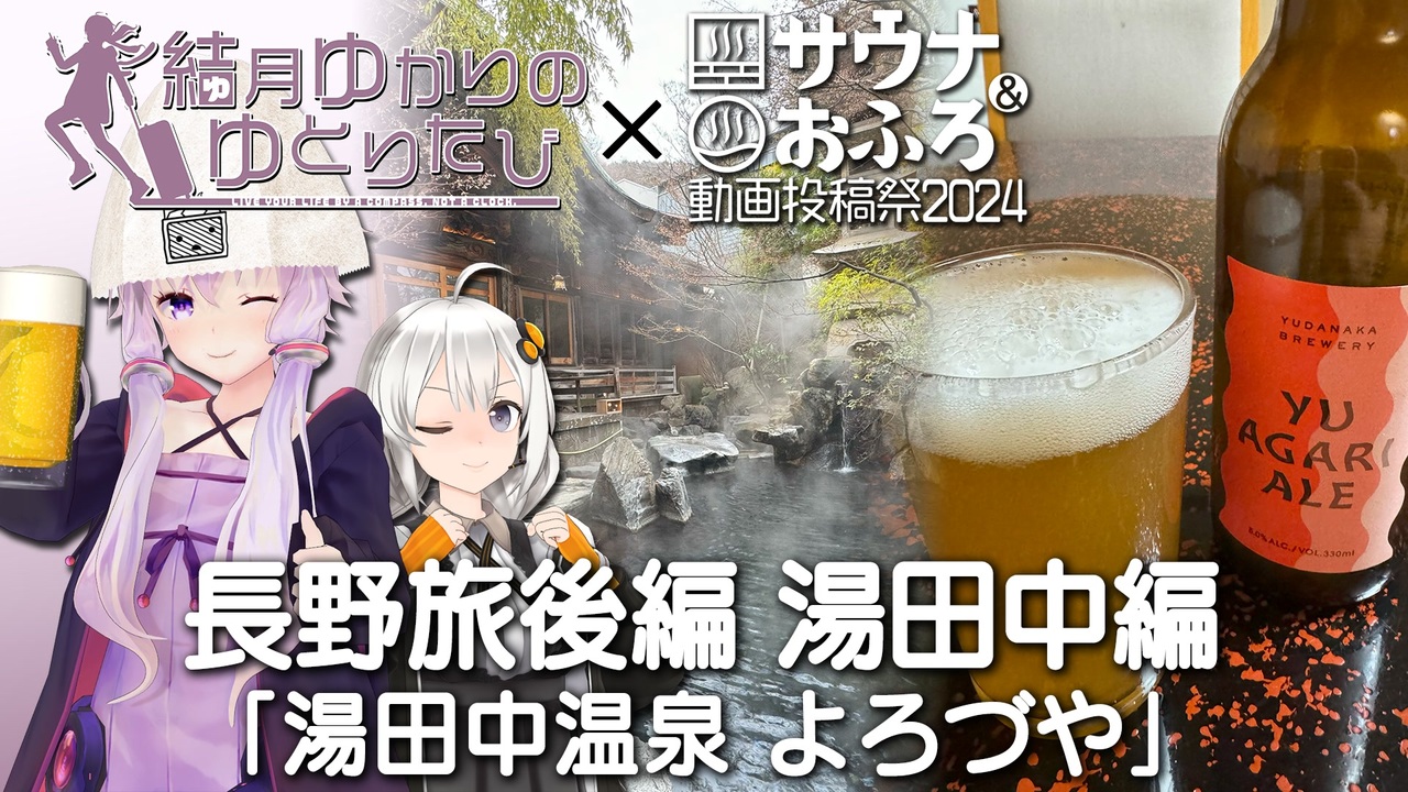 <span style="color: #9900ff; font-size: 24px;">「サウナ&おふろ動画投稿祭2024」開催中!</span><br>企画紹介は告知動画を御覧ください→<a href="https://www.nicovideo.jp/watch/sm43190420" class="watch">sm43190420</a><br>ベホイミの無計画で気楽な一人旅の様子を観察する<strong>「MMD旅行バラエティ」第10回。</strong><br>投稿祭に合わせて、<strong>サウナと温泉を両方楽しむべく長野県に行ってきました。<br>後編は湯田中編。</strong>去年行った渋温泉(<a href="https://www.nicovideo.jp/watch/sm41728647" class="watch">sm41728647</a>)のすぐ隣です。<br><span style="color: #ff00ff;">「いいね!」メッセージ:クラフトビールの豆知識</span><br><br><span style="color: #0000ff;"><strong><結月ゆかりのゆとりたび</strong></span><span style="color: #0000ff;"><a href="https://www.nicovideo.jp/mylist/71080293" target="_blank" rel="noopener">mylist/71080293</a></span><span style="color: #0000ff;"><strong>></strong></span><br>前→日本酒に溺れたい。長野旅前編(松本編)「タビシロサウナ」&「厨十兵衛」<a href="https://www.nicovideo.jp/watch/sm43481632" class="watch">sm43481632</a><br><span style="color: #0000ff;"><strong>短編旅行動画「まちあるき」シリーズもよろしく!</strong></span><span style="color: #0000ff;">→<a href="https://www.nicovideo.jp/mylist/75790185" target="_blank" rel="noopener">mylist/75790185</a></span><br><br><strong>制作:ベホイミProject(<a href="https://www.nicovideo.jp/mylist/27336" target="_blank" rel="noopener">mylist/27336</a>)</strong><br>Twitter:<a href="https://twitter.com/BehoimiP" target="_blank" rel="noopener nofollow">https://twitter.com/BehoimiP</a><br>YouTube「T.A.S魔理沙ちゃんねる」:<a href="https://www.youtube.com/c/TasMarisa" target="_blank" rel="noopener nofollow">https://www.youtube.com/c/TasMarisa</a><br>サウナイキタイ:<a href="https://sauna-ikitai.com/saunners/19899" target="_blank" rel="noopener nofollow">https://sauna-ikitai.com/saunners/19899</a>