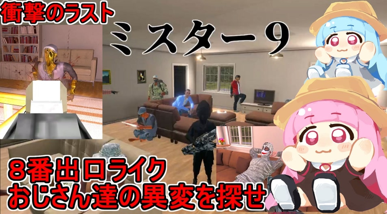意外とボリュームあったぜ!<br>8番出口風間違い探しゲームです<br><br>steam<br><a href="https://store.steampowered.com/app/2835190/9/" target="_blank" rel="noopener nofollow">https://store.steampowered.com/app/2835190/9/</a><br><br>パートナーパスイベント概要<br><a href="https://blog.nicovideo.jp/niconews/215464.html#card" target="_blank" rel="noopener nofollow">https://blog.nicovideo.jp/niconews/215464.html#card</a><br>凪尾パートナーパスURL<br><a href="https://nicoft.io/collections/nagio_gta-collection" target="_blank" rel="noopener nofollow">https://nicoft.io/collections/nagio_gta-collection</a><br><br>クリエイターサポート機能詳細(マイページ凪尾のアイコン下に出ている吹き出しから参加できます!)<br><a href="https://site.nicovideo.jp/creator-support/?ref=cspt-tool" target="_blank" rel="noopener nofollow">https://site.nicovideo.jp/creator-support/?ref=cspt-tool</a><br><br><br>YouTube高画質版:<a href="https://youtu.be/QzsxpbKiR20" target="_blank" rel="noopener nofollow">https://youtu.be/QzsxpbKiR20</a><br><br>凪尾&琴葉姉妹グッズ <br>pixivBooth<br><a href="https://nagio-gta25252.booth.pm/" target="_blank" rel="noopener nofollow">https://nagio-gta25252.booth.pm/</a><br>SUZURI<br><a href="https://suzuri.jp/NAGIO" target="_blank" rel="noopener nofollow">https://suzuri.jp/NAGIO</a><br><br>Twitter::<a href="https://twitter.com/naoreisen" target="_blank" rel="noopener nofollow">https://twitter.com/naoreisen</a><br><br>次回 ミスター9後編:<a href="https://www.nicovideo.jp/watch/sm43502127" class="watch">sm43502127</a><br><br>前回 かくめいのち第三期:火星編:<a href="https://www.nicovideo.jp/watch/sm43486218" class="watch">sm43486218</a><br>前回 ふにんがす:間が悪いスライム編:<a href="https://www.nicovideo.jp/watch/sm43457505" class="watch">sm43457505</a><br>前回 GTAカオス動画:<a href="https://www.nicovideo.jp/watch/sm43289217" class="watch">sm43289217</a><br>前回 AIにポケモン151匹描いてもらった:<a href="https://www.nicovideo.jp/watch/sm43010096" class="watch">sm43010096</a><br>前回 GTA5手配度MAX:完璧で究極の手配度MAX編:<a href="https://www.nicovideo.jp/watch/sm42295823" class="watch">sm42295823</a><br>前回 GTA動画:KICK BACK PV再現:<a href="https://www.nicovideo.jp/watch/sm41527305" class="watch">sm41527305</a><br><br>Part1 :<a href="https://www.nicovideo.jp/watch/sm38982979" class="watch">sm38982979</a> <br>ふにんがす動画マイリスト <a href="https://www.nicovideo.jp/mylist/71314393" target="_blank" rel="noopener">mylist/71314393</a><br>GTA5手配度MAXシリーズ <a href="https://www.nicovideo.jp/mylist/18374381" target="_blank" rel="noopener">mylist/18374381</a><br><br><br><br />ふにんがす動画マイリスト <a href="https://www.nicovideo.jp/mylist/71314393" target="_blank" rel="noopener">mylist/71314393</a><br>GTA5手配度MAXシリーズ <a href="https://www.nicovideo.jp/mylist/18374381" target="_blank" rel="noopener">mylist/18374381</a><br><br>【凪尾マイクラ等サーバー参加方法】<br>ニコニコ凪尾チャンネル・クリエイターサポート加入者・NicoFTパス所持者 YouTubeメンバーシップゴールド以上の方々が参加できます! 分からないことがあったら気軽に質問してください!<br>ニコニコチャンネル<br><a href="https://ch.nicovideo.jp/nagio-gta?ref=pc_mypage_top" target="_blank" rel="noopener nofollow">https://ch.nicovideo.jp/nagio-gta?ref=pc_mypage_top</a><br>※会員限定動画はニコニコチャンネル加入者・YouTubeメンバーシップノーマル以上から視聴できます。<br><br>■超会議2025グッズ通販(pixivBooth)<br><a href="https://nagio-gta25252.booth.pm/" target="_blank" rel="noopener nofollow">https://nagio-gta25252.booth.pm/</a><br>■ずんだもん立ち絵公開しました<br><a href="http://nico.ms/im10892141" target="_blank" rel="noopener nofollow">http://nico.ms/im10892141</a><br>■琴葉姉妹立ち絵公開しました<br><a href="https://seiga.nicovideo.jp/seiga/im10803182" target="_blank" rel="noopener nofollow">https://seiga.nicovideo.jp/seiga/im10803182</a><br><br>楽曲提供:ぺんぺんさん:<a href="https://www.nicovideo.jp/user/93911302" target="_blank" rel="noopener">user/93911302</a><br>ふにちかさん作凪尾立ち絵:<a href="https://seiga.nicovideo.jp/seiga/im10956602?nicorepotwitter_upload_illust" target="_blank" rel="noopener nofollow">https://seiga.nicovideo.jp/seiga/im10956602?nicorepotwitter_upload_illust</a><br><br>▼以下配信活動ページ:よかったら登録してね!<br>ニコ生<br><a href="https://www.nicovideo.jp/user/2620730/live_programs?ref=pc_userpage_menu" target="_blank" rel="noopener nofollow">https://www.nicovideo.jp/user/2620730/live_programs?ref=pc_userpage_menu</a><br>YouTubeiS4mQ7q8w?sub_confirmation=1<br>Twitch:<a href="https://www.twitch.tv/nagiogames" target="_blank" rel="noopener nofollow">https://www.twitch.tv/nagiogames</a><br>ツイキャス:<a href="https://twitcasting.tv/g:106250988999788152314" target="_blank" rel="noopener nofollow">https://twitcasting.tv/g:106250988999788152314</a><br><br>VOICEVOX:ずんだもん VOICEVOX:九州そら