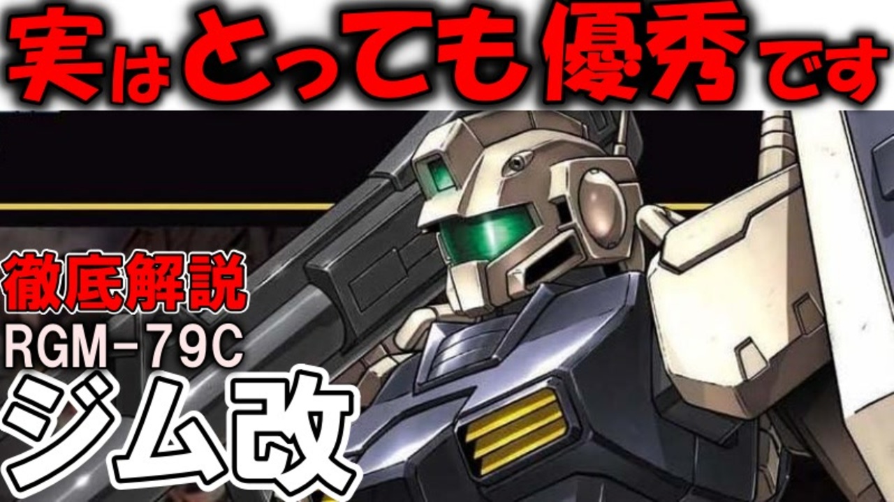 【ジム改解説】RGM-79Cジム改。実はとっても強いんです!だけど・・・【ガンダム0083】<br><br>機動戦士ガンダム0083などに登場するMS、RGM-79Cジム改の性能を解説しながら、実はとっても強くて良いMSなのに消えた理由などを解説、考察していきます。<br><br>アムロのことが好きだからロンド・ベルを応援したいけど<br>税金で運用されてる以上はアムロたちに興味ない人たちの意見も聞く必要があって<br>それだと新型のガンダムなんて許可降りないだろうなぁと思ったりしました<br><br>というか高い維持費払ってるのにフィフスルナ落としを防げなかった時点でバッシング凄そう<br><br>現在連載中の小説はこちら:<br>異世界アイドル革命!死に戻り悪役令嬢は閃いた『こいつら全員アイドルにしてしまおう!』<br><a href="https://kakuyomu.jp/works/16817330662598051943" target="_blank" rel="noopener nofollow">https://kakuyomu.jp/works/16817330662598051943</a><br><br>質問、などありましたらこちらにも<br><a href="https://twitter.com/@i4S0LHspdgzBTor" target="_blank" rel="noopener nofollow">https://twitter.com/@i4S0LHspdgzBTor</a><br><br>清見元康名義でカクヨム、小説家になろう、たいあっぷなどに投稿しています。<br>もし良ければ応援お願いしますm(_ _)m<br><a href="https://kakuyomu.jp/users/GariD/works" target="_blank" rel="noopener nofollow">https://kakuyomu.jp/users/GariD/works</a><br><br>以前の作品(短編シリアス):<br>転生した厄災の大魔女はやがて聖女と呼ばれる<br><a href="https://ncode.syosetu.com/n0827ha/" target="_blank" rel="noopener nofollow">https://ncode.syosetu.com/n0827ha/</a><br><br>A.I.VOICE:結月ゆかり<br>VOICEVOX:ずんだもん<br><br>使用させていただいたずんだもん:<br>ずんだもん mini Deluxe(立ち絵) ver1.2<br><a href="https://seiga.nicovideo.jp/seiga/im10794509" target="_blank" rel="noopener nofollow">https://seiga.nicovideo.jp/seiga/im10794509</a><br><br>いつも広告、コメントありがとうございます。<br>励みになりますm(_ _)m<br>