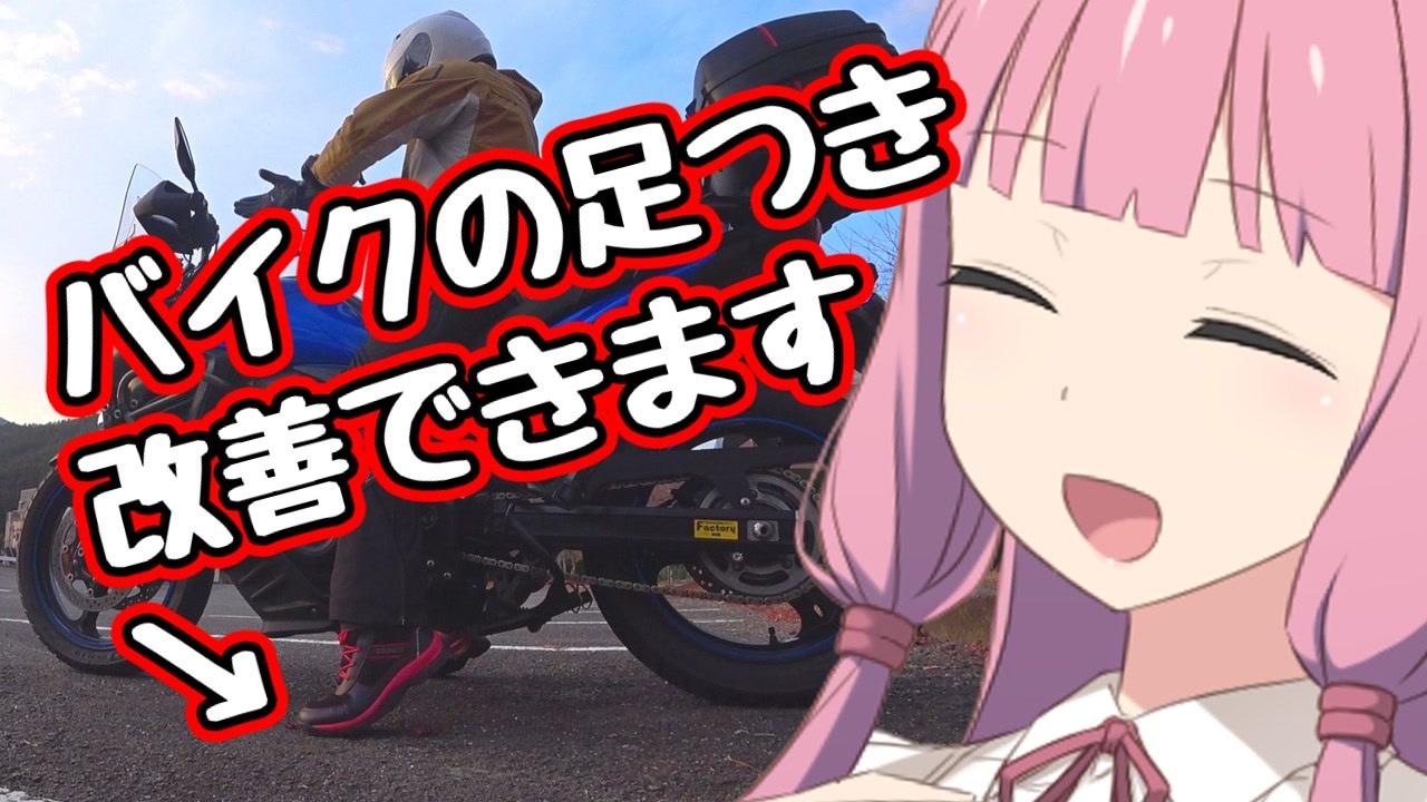 今回は愛車の用品・パーツ紹介祭に参加させていただきました(自演)<br>足つきを改善するための方法・用品・パーツをご紹介します。<br>ここまでやってダメならあきらめるしかないほど紹介してるので<br>足が着かないって方にわずかな希望かトドメの絶望をお届けします。<br>では軽い気持ちでご視聴ください(*´ω`*)<br><br>注意事項<br>この動画は「3割が茶番」です。独自設定や、ふざけた表現を多少含めてお送りしますので、<br>合わないと感じたらコメントはせずにブラウザバックをお願いします。<br>この動画は転載禁止です。(Reproducing all or any part of the contents is prohibited.)<br><br>登場人物紹介<br>浮世絵茜:浮世絵の妖怪。元の姿は美人。今回は残念ながら元の姿で解説します。<br>浮世絵葵:浮世絵茜の妹。元の姿は美人。今回はなぜか浮世絵姿でひんしになってます。<br>うぷ主:この動画の制作者。元の姿は子供部屋おじさん。今回もひんしになってます。<br><br>クレジット(使用素材一覧)<br>合成音声ソフト:VOICEROID2 琴葉 茜・葵<br>立ち絵:blueberry様 もふもふさん様<br>画像素材:いらすとや様<br>以下ニコニ・コモンズ<br>(順不同、自作分含む)<br>編集ソフト:ゆっくりムービーメーカー4 <a href="https://commons.nicovideo.jp/works/nc236011" target="_blank" rel="noopener">nc236011</a><br>BGM:<a href="https://commons.nicovideo.jp/works/nc132272" target="_blank" rel="noopener">nc132272</a><br>効果音:<a href="https://commons.nicovideo.jp/works/nc115456" target="_blank" rel="noopener">nc115456</a> <a href="https://commons.nicovideo.jp/works/nc165372" target="_blank" rel="noopener">nc165372</a> <a href="https://commons.nicovideo.jp/works/nc17976" target="_blank" rel="noopener">nc17976</a>