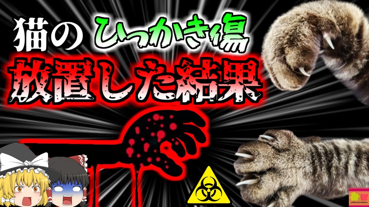 <a href="#" class="seekTime" data-seekTime="00:00" onclick="seekNicoPlayer('#00:00'); return false;">#00:00</a> OP<br><a href="#" class="seekTime" data-seekTime="00:06" onclick="seekNicoPlayer('#00:06'); return false;">#00:06</a> ヒトとネコ<br><a href="#" class="seekTime" data-seekTime="00:52" onclick="seekNicoPlayer('#00:52'); return false;">#00:52</a> 視聴上の注意<br><a href="#" class="seekTime" data-seekTime="1:18" onclick="seekNicoPlayer('#1:18'); return false;">#1:18</a> 本編開始<br><a href="#" class="seekTime" data-seekTime="1:56" onclick="seekNicoPlayer('#1:56'); return false;">#1:56</a> シャム猫の「チャン」<br><a href="#" class="seekTime" data-seekTime="2:15" onclick="seekNicoPlayer('#2:15'); return false;">#2:15</a> 右手に深いひっかき傷<br><a href="#" class="seekTime" data-seekTime="2:56" onclick="seekNicoPlayer('#2:56'); return false;">#2:56</a> 異変<br><a href="#" class="seekTime" data-seekTime="3:26" onclick="seekNicoPlayer('#3:26'); return false;">#3:26</a> 悪化する体調<br><a href="#" class="seekTime" data-seekTime="3:41" onclick="seekNicoPlayer('#3:41'); return false;">#3:41</a> 溶けた右腕<br><a href="#" class="seekTime" data-seekTime="4:09" onclick="seekNicoPlayer('#4:09'); return false;">#4:09</a> 壊〇性筋膜炎<br><a href="#" class="seekTime" data-seekTime="5:31" onclick="seekNicoPlayer('#5:31'); return false;">#5:31</a> 患部をえぐり取るしかなかった<br><a href="#" class="seekTime" data-seekTime="6:51" onclick="seekNicoPlayer('#6:51'); return false;">#6:51</a> その後のメディアインタビュー<br><a href="#" class="seekTime" data-seekTime="7:57" onclick="seekNicoPlayer('#7:57'); return false;">#7:57</a> ヒトと動物<br><br>今回紹介するのは、ペットに関する感染症事例の一つです。<br>イングランド南西部にある、グロスタシャー州に暮らす高齢者女性「Aさん」はこの日、趣味のガーデニングのため、庭で土いじりなどをしていましたが、その時家で放し飼いにしているペットの猫「チャン」が足元にいることに気が付きました。<br>彼女はチャンを抱きかかえようと、両手を延ばして持ち上げようとしましたが、その時チャンが暴れ出し、彼女の右手の甲に深く爪を突き立てました。<br>その結果、Aさんの手には深いひっかき傷が出来てしまったため、彼女は家に戻り、応急手当てをしましたが、翌日辺りになると高熱などのインフルエンザに似た症状を発症し、さらに時間が経つと、患部である右手は大きく腫れ、吐き気、40度の熱、頭痛が現れ現れました。<br>また、右手はまるで水風船のように腫れ、全身に発疹が出るという、恐ろしい症状を発症し、彼女は病院で検査を受けたところ、細菌感染による敗血症、それによるショック、臓器不全、壊〇性筋膜炎を発症していると診断されました。<br>この病気は10万人に数人ほどしか発症しない稀なものでしたが、彼女は外で飼育していたチャンに引っ掛かれたことによって、細菌に感染し、右手が内側から壊〇していき・・・<br><br>引用・出展・参考文献<br>東京大学 広報誌「淡青」37号「飼い猫の始まり」<br><a href="https://ishort.ink/Ea57" target="_blank" rel="noopener nofollow">https://ishort.ink/Ea57</a><br>METRO 「Woman, 65, left in coma after her ‘spiteful’ Siamese cat scratched her」<br><a href="https://ishort.ink/Ek4r" target="_blank" rel="noopener nofollow">https://ishort.ink/Ek4r</a><br><br />※この動画は過去の事件を知り、現在でも同じことが発生する危険性を再認識、関与しないように促すための動画であり、視聴者を扇動、動揺を誘うためのコンテンツではありません。<br><br>ご要望にお応えして、メンバーシップの開設を行いました。<br>下記URLからも登録可能ですので、ご興味がある方は是非ご参加ください。<br><a href="https://www.youtube.com/channel/UCcT5a1J7XJW7CLYI2RKl4pw/join" target="_blank" rel="noopener nofollow">https://www.youtube.com/channel/UCcT5a1J7XJW7CLYI2RKl4pw/join</a><br><br><br>Twitter<br>→<a href="https://twitter.com/yukkurisurutoko" target="_blank" rel="noopener nofollow">https://twitter.com/yukkurisurutoko</a><br><br>取り急ぎ、簡易的にですがマイリストを作りました。<br>【ゆっくり解説】事故・事件関係紹介リスト <br><a href="https://www.nicovideo.jp/mylist/71034319" target="_blank" rel="noopener nofollow">https://www.nicovideo.jp/mylist/71034319</a><br>【ゆっくり解説】放射線系事故<br><a href="https://www.nicovideo.jp/mylist/71034368" target="_blank" rel="noopener nofollow">https://www.nicovideo.jp/mylist/71034368</a><br>【ゆっくり解説】鉄道系事故・事件関連<br><a href="https://www.nicovideo.jp/mylist/71034379" target="_blank" rel="noopener nofollow">https://www.nicovideo.jp/mylist/71034379</a>