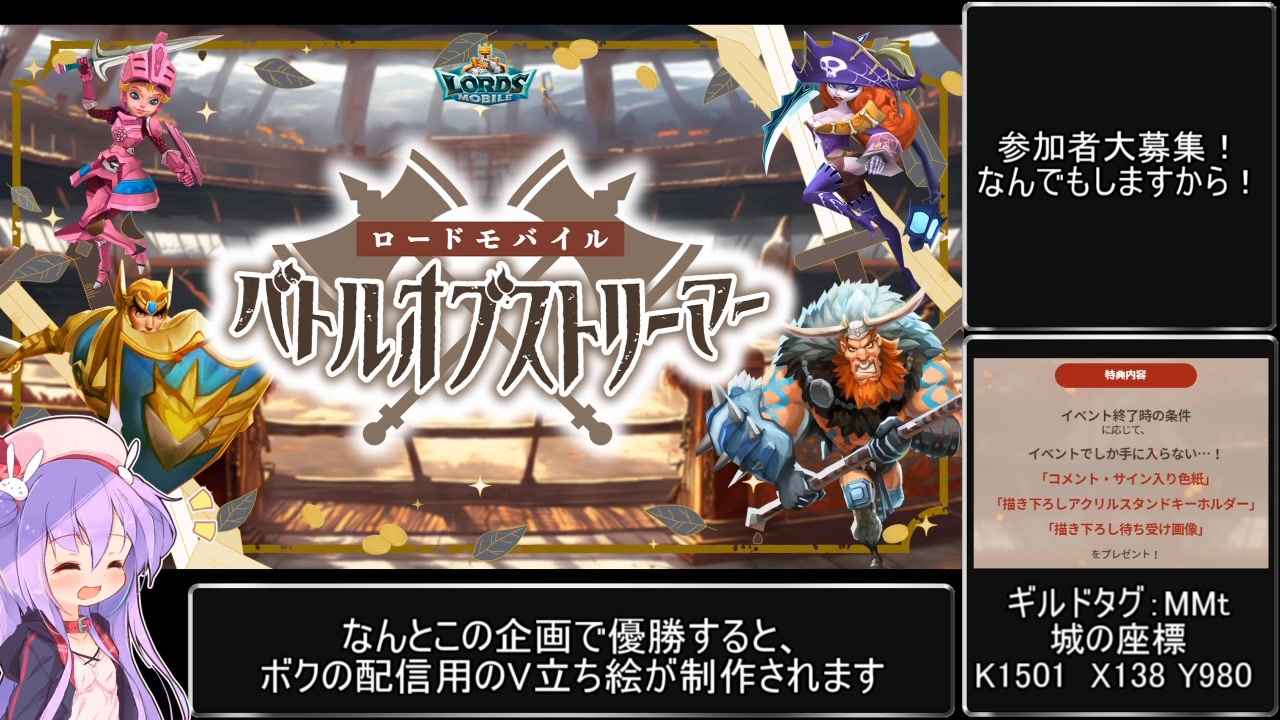 ゲームのDLは下記から!<br><a href="https://lordsmobile-battleofstreamers01.com" target="_blank" rel="noopener nofollow">https://lordsmobile-battleofstreamers01.com</a><br>※DL時はトラッキングを許可してください。 <br><br>ギルドタグ:MMt<br>城の座標:K1501 X138 Y980 <br><br>メメリスちゃんRPGがDLサイトにて発売開始しました!<br>【メメリスちゃんのえっちなRPG ~ガチャと聖女と危ないダンジョン~】<br><a href="https://www.dlsite.com/maniax/dlaf/=/t/s/link/work/aid/natu2525/id/RJ01050555.html" target="_blank" rel="noopener nofollow">https://www.dlsite.com/maniax/dlaf/=/t/s/link/work/aid/natu2525/id/RJ01050555.html</a><br><br>▼自作エロゲのダウンロードはこちらから(無料で遊べます)<br>【エロゲ制作進歩】<a href="https://natsu.fanbox.cc/" target="_blank" rel="noopener nofollow">https://natsu.fanbox.cc/</a><br>【ci-en】<a href="https://ci-en.dlsite.com/creator/11070" target="_blank" rel="noopener nofollow">https://ci-en.dlsite.com/creator/11070</a><br>【ファンティア】<a href="https://fantia.jp/fanclubs/7733" target="_blank" rel="noopener nofollow">https://fantia.jp/fanclubs/7733</a><br><br>動画のご意見やご感想はこちらに<br>【ツイッター】<a href="https://twitter.com/natu5505" target="_blank" rel="noopener nofollow">https://twitter.com/natu5505</a><br>【ニコ生】co1196089<br>【YouTube】<a href="https://www.youtube.com/channel/UCDclEY1cvwgHA7isrf7C3Ag?view_as=subscriber" target="_blank" rel="noopener nofollow">https://www.youtube.com/channel/UCDclEY1cvwgHA7isrf7C3Ag?view_as=subscriber</a><br><br>【投稿動画part1まとめ】<a href="https://www.nicovideo.jp/mylist/62522490" target="_blank" rel="noopener">mylist/62522490</a>