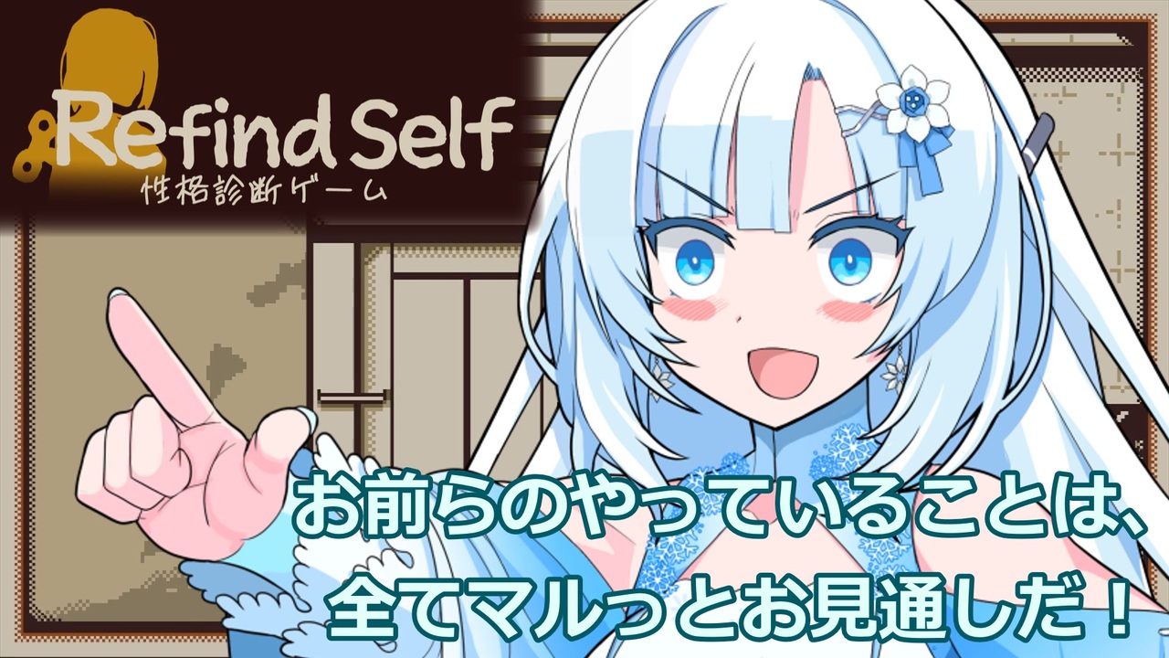 世にも珍しい後輩雪ちゃんのゲーム配信(という設定)<br>公式サイト→<a href="https://playism.com/game/refindself/" target="_blank" rel="noopener nofollow">https://playism.com/game/refindself/</a><br><br>使用ソフト:VOICEVOX:WhiteCUL 効果音ラボ <br><br>なし←前 次→<a href="https://www.nicovideo.jp/watch/sm43663370" class="watch">sm43663370</a> 単発ゲーム実況→<a href="https://www.nicovideo.jp/mylist/76510227" target="_blank" rel="noopener">mylist/76510227</a><br>何か質問等ございましたらこちらへ⇒<a href="https://twitter.com/musiitakamaboko" target="_blank" rel="noopener nofollow">https://twitter.com/musiitakamaboko</a><br>雪ちゃん(後輩)シリーズ→<a href="https://www.nicovideo.jp/mylist/75323148" target="_blank" rel="noopener">mylist/75323148</a> 騒音3人組実況→<a href="https://www.nicovideo.jp/mylist/76131940" target="_blank" rel="noopener">mylist/76131940</a><br>ネタ動画→<a href="https://www.nicovideo.jp/mylist/74510113" target="_blank" rel="noopener">mylist/74510113</a> ボイボ劇場(色々なの)→<a href="https://www.nicovideo.jp/mylist/75893506" target="_blank" rel="noopener">mylist/75893506</a><br>ゆっくり昔ばなし→<a href="https://www.nicovideo.jp/mylist/74203390" target="_blank" rel="noopener">mylist/74203390</a> 苦行ゲーずんだもん→<a href="https://www.nicovideo.jp/mylist/74914465" target="_blank" rel="noopener">mylist/74914465</a><br>タルコフ奮闘記→<a href="https://www.nicovideo.jp/mylist/75100736" target="_blank" rel="noopener">mylist/75100736</a> マイクラゆっくり実況→<a href="https://www.nicovideo.jp/mylist/74492386" target="_blank" rel="noopener">mylist/74492386</a>