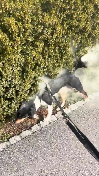 ホモと見る花粉を全身に浴びる犬