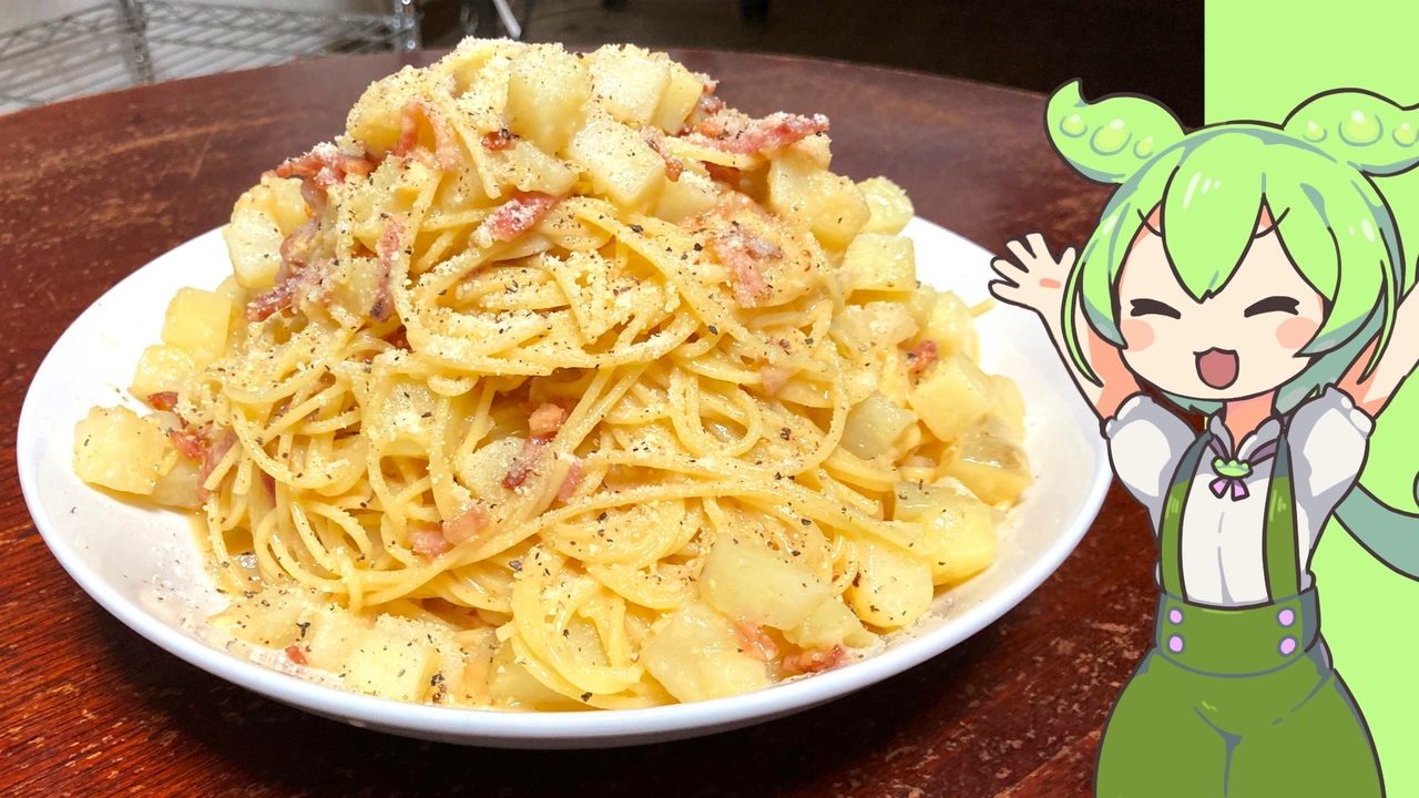 これから新じゃがの旬になったらよりンまいぞ<br><br>前回→<a href="https://www.nicovideo.jp/watch/sm43506995" class="watch">sm43506995</a> 次回→<a href="https://www.nicovideo.jp/watch/sm43570342" class="watch">sm43570342</a><br>【材料】<br>・好きなパスタ<br>・じゃがいも<br>・ベーコンとか<br>・卵<br>・にんにく(常識的な量)<br>・粉チーズ<br>・黒コショウ(仕上げよう・好み)<br>・白コショウ(卵に入れる・好み)<br>・塩<br>・コンソメ(味が物足りないって人は入れるとよろし)<br /><br>レシピとか質問とか雑多に募集中<br><a href="https://marshmallow-qa.com/pwilzcacj1j87mz?t=6PAejL&utm_medium=url_text&utm_source=promotion" target="_blank" rel="noopener nofollow">https://marshmallow-qa.com/pwilzcacj1j87mz?t=6PAejL&utm_medium=url_text&utm_source=promotion</a><br><br>限界マイリスト<br><a href="https://www.nicovideo.jp/series/379506" target="_blank" rel="noopener nofollow">https://www.nicovideo.jp/series/379506</a><br><br>利用させてもらったもの<br>・ VOICEVOX:ずんだもん<br>立ち絵<br>・坂本アヒル氏<br><a href="https://seiga.nicovideo.jp/seiga/im10788496" target="_blank" rel="noopener nofollow">https://seiga.nicovideo.jp/seiga/im10788496</a><br>BGM<br>・ニコニコモンズ<br><a href="https://commons.nicovideo.jp/material/nc97718" target="_blank" rel="noopener nofollow">https://commons.nicovideo.jp/material/nc97718</a><br>各ずんだもん素材<br>・ずんだおばけ氏<br><a href="https://www.nicovideo.jp/user/124111720?rf=nvpc&rp=watch&ra=video_information" target="_blank" rel="noopener nofollow">https://www.nicovideo.jp/user/124111720?rf=nvpc&rp=watch&ra=video_information</a> <a href="https://www.youtube.com/@ZundaGhost" target="_blank" rel="noopener nofollow">https://www.youtube.com/@ZundaGhost</a><br>SE<br>・効果音ラボ<br><br>見てくれて感謝!<br>いいね・コメント・フォロー。マイリストも下さった方<br>ありがとうございます<br>・救援物資欲しいモノリスト<br><a href="https://www.amazon.co.jp/hz/wishlist/ls/2Q8W3EKKLTRVS?ref_=wl_fv_le" target="_blank" rel="noopener nofollow">https://www.amazon.co.jp/hz/wishlist/ls/2Q8W3EKKLTRVS?ref_=wl_fv_le</a><br>・お手紙とか干し芋から送れないものはこちら<br><a href="https://ouen55.com/sentwin5496/" target="_blank" rel="noopener nofollow">https://ouen55.com/sentwin5496/</a><br>