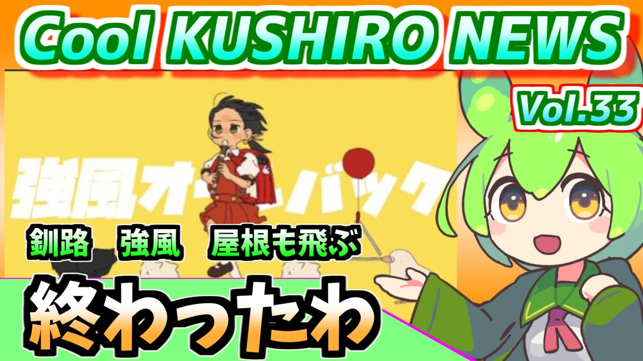 釧路近辺で起こった出来事をなんとなくお伝えするニュース番組です <br><br>ちょっと雰囲気を変えてみました<br><br>100年フード:<a href="https://foodculture2021.go.jp" target="_blank" rel="noopener nofollow">https://foodculture2021.go.jp</a><br><br><br><br>●音声ソフト<br>VOICEVOX:ずんだもん<br>VOICEVOX:四国めたん<br>VOICEVOX:九州そら<br><br>●X<br>@acerola_vitamin<br><br>●ブルースカイ<br>@pighimarimo.bsky.social<br><br /><span style="color: #ff0000; font-size: 24px;"><strong>釧路を紹介するブログ始めました</strong></span>:<a href="https://946de2100.com" target="_blank" rel="noopener nofollow">https://946de2100.com</a><br><br><span style="color: #ff0000; font-size: 16px;"><strong>●おススメ動画:</strong></span><span style="color: #ff0000; font-size: 18px;"><strong>【歴史解説】かつて 釧路を支配していたのは佐賀だった ~釧路元町の始まりと佐野孫右衛門の盛衰~</strong></span><br><br><a href="https://www.nicovideo.jp/watch/sm44267722" class="watch">sm44267722</a><br><br><br><span style="color: #ff0000; font-size: 18px;"><strong>●YouTubeチャンネルも登録よろしくお願いします</strong></span><br><strong>釧路チャンネル <a href="https://www.youtube.com/@znd-kaisetu" target="_blank" rel="noopener nofollow">https://www.youtube.com/@znd-kaisetu</a></strong><br>恋結シラリカソロチャンネル <a href="https://www.youtube.com/@enmusubi-shirarika" target="_blank" rel="noopener nofollow">https://www.youtube.com/@enmusubi-shirarika</a><br><br><br>ほしいものリスト <a href="https://www.amazon.jp/hz/wishlist/ls/2OUUB1JQSRUWG?ref_=wl_share" target="_blank" rel="noopener nofollow">https://www.amazon.jp/hz/wishlist/ls/2OUUB1JQSRUWG?ref_=wl_share</a><br>クリエイターサポート<a href="https://creator-support.nicovideo.jp/registration/116665199" target="_blank" rel="noopener nofollow">https://creator-support.nicovideo.jp/registration/116665199</a>