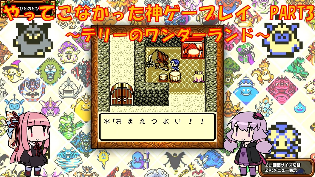 Switch版 テリーのワンダーランドレトロをプレイ<br>ゆかりさんはメジャーじゃないゲームをやる俺カッケー族だったのでドラクエをやったことがありませんでした(DSのⅤ以外)<br><br>ゆ:お ま え す ご い な<br>茜:ファイナルドラゴン・・・<br><br>PART1:<a href="https://www.nicovideo.jp/watch/sm43525709" target="_blank" rel="noopener nofollow">https://www.nicovideo.jp/watch/sm43525709</a><br><br>各DQシリーズ第1回リンク<br>DQ1 PART1:<a href="https://www.nicovideo.jp/watch/sm41819145" target="_blank" rel="noopener nofollow">https://www.nicovideo.jp/watch/sm41819145</a><br>DQ2 PART1:<a href="https://www.nicovideo.jp/watch/sm41895278" target="_blank" rel="noopener nofollow">https://www.nicovideo.jp/watch/sm41895278</a><br>DQ3 PART1:<a href="https://www.nicovideo.jp/watch/sm42034398" target="_blank" rel="noopener nofollow">https://www.nicovideo.jp/watch/sm42034398</a><br>DQ4 PART1:<a href="https://www.nicovideo.jp/watch/sm42520974" target="_blank" rel="noopener nofollow">https://www.nicovideo.jp/watch/sm42520974</a><br>DQ5 PART1:<a href="https://www.nicovideo.jp/watch/sm42848575" target="_blank" rel="noopener nofollow">https://www.nicovideo.jp/watch/sm42848575</a><br>DQ6 PART1:<a href="https://www.nicovideo.jp/watch/sm43080264" target="_blank" rel="noopener nofollow">https://www.nicovideo.jp/watch/sm43080264</a><br><br>動画内で使用させていただいた素材<br>【イラスト】<br>結月ゆかり→山栗鼠様:<a href="https://seiga.nicovideo.jp/seiga/im5354179" target="_blank" rel="noopener nofollow">https://seiga.nicovideo.jp/seiga/im5354179</a><br>琴葉茜→山栗鼠様:<a href="https://seiga.nicovideo.jp/seiga/im5342445" target="_blank" rel="noopener nofollow">https://seiga.nicovideo.jp/seiga/im5342445</a><br><br>【音声】<br>A.I.Voice:琴葉茜<br><a href="https://aivoice.jp/product/kotonoha/" target="_blank" rel="noopener nofollow">https://aivoice.jp/product/kotonoha/</a><br><br>A.I.Voice:結月ゆかり<br><a href="https://aivoice.jp/product/yukari/" target="_blank" rel="noopener nofollow">https://aivoice.jp/product/yukari/</a><br><br>【その他素材】<br>効果音ラボ様:<a href="https://soundeffect-lab.info/" target="_blank" rel="noopener nofollow">https://soundeffect-lab.info/</a><br>いらすとや様:<a href="https://www.irasutoya.com/" target="_blank" rel="noopener nofollow">https://www.irasutoya.com/</a><br>甘茶の音楽工房様:<a href="https://amachamusic.chagasi.com/image_bukimi.html" target="_blank" rel="noopener nofollow">https://amachamusic.chagasi.com/image_bukimi.html</a><br>等<br><br>この動画で利用している株式会社スクウェア・エニックスを代表とする共同著作者が権利を所有する著作物及びスギヤマ工房有限会社が権利を所有する楽曲の転載・配布は禁止いたします。<br>© ARMOR PROJECT/BIRD STUDIO/SQUARE ENIX All Rights Reserved.<br>© SUGIYAMA KOBO