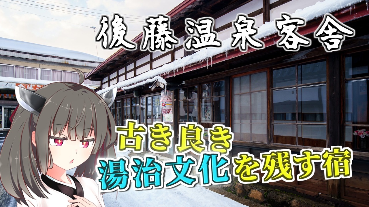 趣ある渋い旅館・ホテルの紹介をするシリーズ『きりたんの宿帳』。<br>今回は青森県の黒石市、温湯温泉にある「後藤温泉客舎」。<br>良質な温泉が多く、生活の中に温泉が存在する青森県。<br>そこ津軽には、かつての湯治文化を今に伝える宿が今でも営業しているのを知っていますか?<br>内湯がなく、部屋と炊事場だけ、そんな昔の面影を強く宿にきりたんが宿泊します。<br><br>この動画は『サウナ&お風呂動画投稿祭2024』参加作品です。<br><br>「旅情」<br>「My Home Town」<br>by Nash Music Library<br><br>■宿泊施設情報<br>施設名 :後藤温泉客舎<br>住所 :黒石市温湯字鶴泉23<br>電話番号:0172-54-8318<br>宿泊料金:3,500円~<br>予約方法:電話のみ<br><br>ー 弘前の近代建築巡りに有用なサイト・書籍 ー<br>● HIROSAKI Heritage(サイト)<br> <a href="https://www.hirosaki-heritage.com/" target="_blank" rel="noopener nofollow">https://www.hirosaki-heritage.com/</a><br><br>● 藤沢うるう『てくてく弘前近代建築』(書籍)<br> <a href="https://booth.pm/ja/items/5006942" target="_blank" rel="noopener nofollow">https://booth.pm/ja/items/5006942</a><br><br><br>別シリーズ、日本の町並み建築解説動画『琴葉姉妹の町並み巡検録』もどうぞよろしくお願いいたします。→ <a href="https://www.nicovideo.jp/series/360315" target="_blank" rel="noopener">series/360315</a><br><br>Twitter:<a href="https://twitter.com/kunio_miracle" target="_blank" rel="noopener nofollow">https://twitter.com/kunio_miracle</a> (←常にいる)<br>イウしキー:<a href="https://iwshkey.com/@kunio_miracle" target="_blank" rel="noopener nofollow">https://iwshkey.com/@kunio_miracle</a> (←よくいる)<br><br>