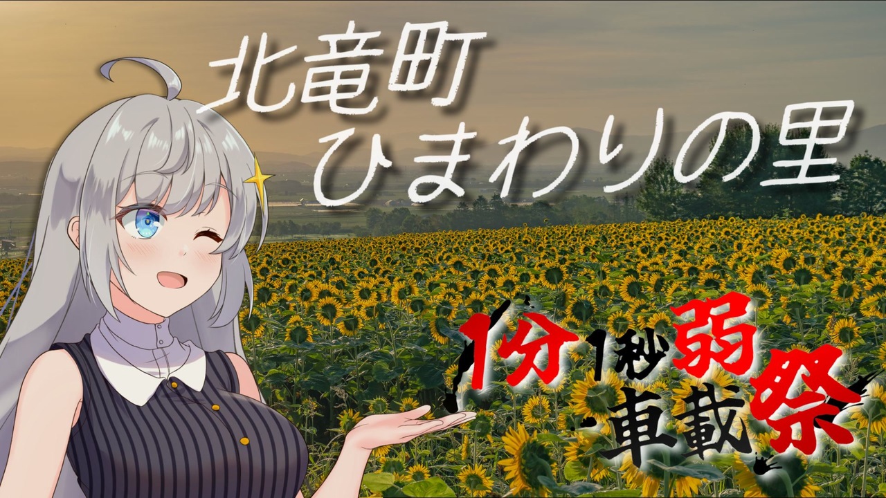 レギュ遵守の動画は初投稿です!<br><br>1分1秒弱車載祭開催おめでとうございます!<br>今回は素材不足で作成出来なかった夏のひまわり鑑賞を動画にしてみました!<br>朝日に染まるひまわり...夏休みの朝を感じるノスタルジックな光景です!<br><br>●1分1秒弱車載祭<br>主催 とれんた君様<br>告知動画 <a href="https://www.nicovideo.jp/watch/sm43250979" class="watch">sm43250979</a><br><br>●撮影日<br>・2023年8月11日<br><br>●撮影機材<br>・LUMIX GH6<br> LEICA DG VARIO-ELMARIT 12-60mm / F2.8-4.0 ASPH. / POWER O.I.S.<br>・GoPro HERO 7<br><br>●お借りしたもの<br>・四ラユメ式紲星あかり立ち絵Ver1.02 四ラユメ様<br>・VOICEROIDのちっこいイラスト素材 虹色にゃんたMIX様<br>・【BGM】碧い過日【夏ピアノ】 漉餡/こしあん様<br>他コンテンツツリー参照<br><br>週末日記帳:<a href="https://twitter.com/tyama_takenoko" target="_blank" rel="noopener nofollow">https://twitter.com/tyama_takenoko</a><br><a href="https://bsky.app/profile/tyama-takenoko.bsky.social" target="_blank" rel="noopener nofollow">https://bsky.app/profile/tyama-takenoko.bsky.social</a>