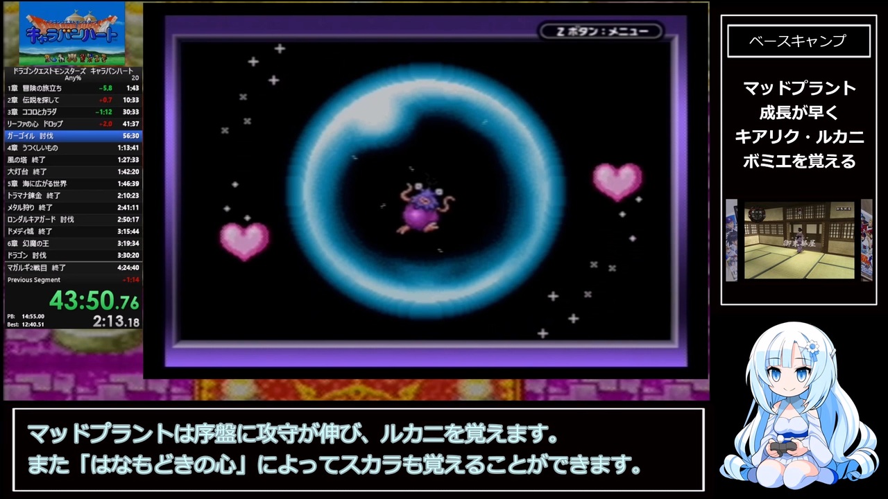 キャラバンハートを走らせていただいたので作った解説?動画の第三回です。<br>解説動画の再生・広告・コメント・いいね・マイリストありがとうございます!<br>チャートをnoteに書きました!良かったら見て下さい<a href="https://note.com/magaga_rugigi/n/n32ffcbc2f33c" target="_blank" rel="noopener nofollow">https://note.com/magaga_rugigi/n/n32ffcbc2f33c</a><br>Speedrun com基準でタイマーを切っているので、計測区間がニコ生RTAの走者さんと違っています、<br>Defeat Magarugiはマガルギを倒すまでの時間を計測するレギュレーションです。<br>あなたのなまえはキでいいですか?でタイマースタート<br>マガルギを倒した瞬間にタイマーストップ<br>part1:<a href="https://www.nicovideo.jp/watch/sm43455684" class="watch">sm43455684</a> part2:<a href="https://www.nicovideo.jp/watch/sm43508458" class="watch">sm43508458</a> part4:<a href="https://www.nicovideo.jp/watch/sm43626304" class="watch">sm43626304</a><br><br>・お借りしたもの<br>VOICEVOX:WhiteCUL<br>moiky様 低頭身WhiteCUL立ち絵素材<br><br>この動画で利用している株式会社スクウェア・エニックスを代表とする共同著作者が権利を所有する著作物及びスギヤマ工房有限会社が権利を所有する楽曲の転載・配布は禁止いたします。<br>© ARMOR PROJECT/BIRD STUDIO/SQUARE ENIX All Rights Reserved.<br>© SUGIYAMA KOBO