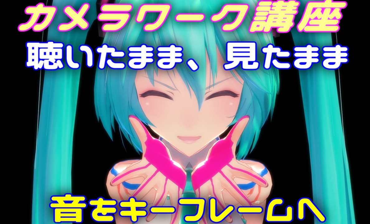 しばらくぶりのカメラ講座です。<br>高画質版 <a href="https://youtu.be/QfJifJ-E_6Y" target="_blank" rel="noopener nofollow">https://youtu.be/QfJifJ-E_6Y</a><br><br>生放送拡大版 <a href="https://youtu.be/IsQnGJrFXcA" target="_blank" rel="noopener nofollow">https://youtu.be/IsQnGJrFXcA</a><br><br>カメラ作るのは<br>「技術」よりも 「音を感じ取れること」が重要だと思います。<br>音に形とか、色とか 見えてますか!?<br><br>音が「見える」ようになると・・・<br>実は、そのまんまカメラを作れちゃうんですww<br><br>実際「テルミーヘルプミー」のカメラは<br>生放送で2時間くらいで作っちゃってますw<br>カメラデモ <a href="https://www.nicovideo.jp/watch/sm43477225" class="watch">sm43477225</a><br><br>動画内で使った ちょいモーション<br>何かと使えるかもしれませんので 配布いたしますね^^<br><a href="https://bowlroll.net/file/315634" target="_blank" rel="noopener nofollow">https://bowlroll.net/file/315634</a><br />共通コメント<br>★ご不明な点は、動画内にコメントにどうぞ~。後で回答いたします^^★<br>基本的な配布は下記に移行中です。<br><a href="https://touzoku-tsubaki.booth.pm/" target="_blank" rel="noopener nofollow">https://touzoku-tsubaki.booth.pm/</a><br>・無造作にDLされない為の抑止の為の措置です。ご理解ください。<br>・モーションはMMDモデル用に作っているものです。<br> その他のモデルで、表情や、準標準ボーンが欠落された状態でご使用になる場合は<br> 「テスト」と説明文に入れてください!<br>・カメラ制作や共同制作などされる方はお申し出ください(個別対応いたします)<br><a href="https://x.com/touzoku_tsubaki" target="_blank" rel="noopener nofollow">https://x.com/touzoku_tsubaki</a><br><br><span style="font-size: 13px;">リップは LipFaceMakerにて作成しております(一部使用していない動画もございます)<br>LipFaceMaker配布先は(</span><a href="https://www.nicovideo.jp/watch/sm28872338" class="watch">sm28872338</a><span style="font-size: 13px;">)でご案内しています </span><br><br><span style="font-size: 13px;">トレース覚書ブログ </span><a href="http://blog.livedoor.jp/touzokutsubaki/archives/9744704.html" target="_blank" rel="noopener nofollow">http://blog.livedoor.jp/touzokutsubaki/archives/9744704.html</a><br>ギターの持たせ方 <a href="http://blog.livedoor.jp/touzokutsubaki/archives/9744681.html" target="_blank" rel="noopener nofollow">http://blog.livedoor.jp/touzokutsubaki/archives/9744681.html</a><br>表情講座:<a href="https://www.nicovideo.jp/watch/sm43683305" target="_blank" rel="noopener nofollow">https://www.nicovideo.jp/watch/sm43683305</a><br>カメラ講座:<a href="https://www.nicovideo.jp/watch/sm43547510" target="_blank" rel="noopener nofollow">https://www.nicovideo.jp/watch/sm43547510</a><br><br><br><span style="font-size: 13px;">生トレースすること多いので お気軽にお声がけください^^</span><br><a href="https://www.nicovideo.jp/mylist/21358258" target="_blank" rel="noopener">mylist/21358258</a>(盗賊つばき)<br><span style="font-size: 14px;">mylist/</span>69214910<span style="font-size: 14px;">(盗賊つばき)</span><br><a href="https://www.nicovideo.jp/mylist/51346572" target="_blank" rel="noopener">mylist/51346572</a>(だんしゃくいも)