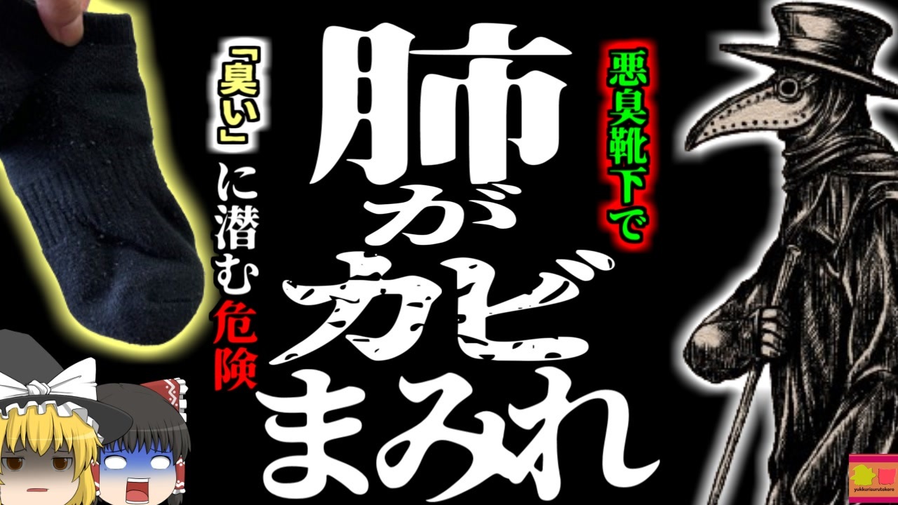 <a href="#" class="seekTime" data-seekTime="00:00" onclick="seekNicoPlayer('#00:00'); return false;">#00:00</a> OP<br><a href="#" class="seekTime" data-seekTime="00:06" onclick="seekNicoPlayer('#00:06'); return false;">#00:06</a> 「におい」<br><a href="#" class="seekTime" data-seekTime="1:22" onclick="seekNicoPlayer('#1:22'); return false;">#1:22</a> 視聴上の注意<br><a href="#" class="seekTime" data-seekTime="1:50" onclick="seekNicoPlayer('#1:50'); return false;">#1:50</a> 本編開始<br><a href="#" class="seekTime" data-seekTime="2:06" onclick="seekNicoPlayer('#2:06'); return false;">#2:06</a> 呼吸困難で運ばれた男性「Aさん」<br><a href="#" class="seekTime" data-seekTime="2:33" onclick="seekNicoPlayer('#2:33'); return false;">#2:33</a> 「肺真菌症」<br><a href="#" class="seekTime" data-seekTime="4:24" onclick="seekNicoPlayer('#4:24'); return false;">#4:24</a> どこから入り込んだ?<br><a href="#" class="seekTime" data-seekTime="4:46" onclick="seekNicoPlayer('#4:46'); return false;">#4:46</a> Aさんの変わったクセ<br><a href="#" class="seekTime" data-seekTime="5:58" onclick="seekNicoPlayer('#5:58'); return false;">#5:58</a> 靴下がにおう原因<br><a href="#" class="seekTime" data-seekTime="7:34" onclick="seekNicoPlayer('#7:34'); return false;">#7:34</a> 「くさい」は危険信号<br><br>今回紹介するのは、中国で発生した珍しい感染症事例です。<br>中華人民共和国南東部、福建省の病院にはこの日、一人の男性が緊急搬送されてきました。<br>彼は市内に暮らす男性「Aさん」で、妻の「Bさん」の通報により、救急車でこの病院に搬送されていました。<br>彼は少し前から原因不明の咳を繰り返しており、それは日に日に悪化。<br>痰に血が混じったり、「胸が痛い」と訴えるようになり、遂にこの日呼吸困難となり、意識不明の重体に陥ってしまっていました。<br>医師はすぐにBさんから事情を聴き、レントゲン検査を行ったところ、彼の肺には白いクモの巣のようなものが映り込んでいました。<br>また、彼の痰を合わせて検査したところ、Aさんは「肺真菌症」という、カビが肺に生えてしまう病気に罹っていると診断されました。<br>この肺真菌症は、空気中や土壌に存在する所謂「カビ」が、免疫力の低下しているヒトの肺に巣食うことによって発症する病気でした。<br>基礎疾患や抗がん剤治療を行っている患者に診られる症状だったため、医師は彼の既往歴を詳しく調べましたが、それらしいものは見つかりませんでした。<br>医師は原因を探るため、妻のBさんから事情を聴くと、Aさんの「少し変わったクセ」の話を聞き・・・<br><br><br />※この動画は過去の事件を知り、現在でも同じことが発生する危険性を再認識、関与しないように促すための動画であり、視聴者を扇動、動揺を誘うためのコンテンツではありません。<br><br>ご要望にお応えして、メンバーシップの開設を行いました。<br>下記URLからも登録可能ですので、ご興味がある方は是非ご参加ください。<br><a href="https://www.youtube.com/channel/UCcT5a1J7XJW7CLYI2RKl4pw/join" target="_blank" rel="noopener nofollow">https://www.youtube.com/channel/UCcT5a1J7XJW7CLYI2RKl4pw/join</a><br><br><br>Twitter<br>→<a href="https://twitter.com/yukkurisurutoko" target="_blank" rel="noopener nofollow">https://twitter.com/yukkurisurutoko</a><br><br>取り急ぎ、簡易的にですがマイリストを作りました。<br>【ゆっくり解説】事故・事件関係紹介リスト <br><a href="https://www.nicovideo.jp/mylist/71034319" target="_blank" rel="noopener nofollow">https://www.nicovideo.jp/mylist/71034319</a><br>【ゆっくり解説】放射線系事故<br><a href="https://www.nicovideo.jp/mylist/71034368" target="_blank" rel="noopener nofollow">https://www.nicovideo.jp/mylist/71034368</a><br>【ゆっくり解説】鉄道系事故・事件関連<br><a href="https://www.nicovideo.jp/mylist/71034379" target="_blank" rel="noopener nofollow">https://www.nicovideo.jp/mylist/71034379</a>
