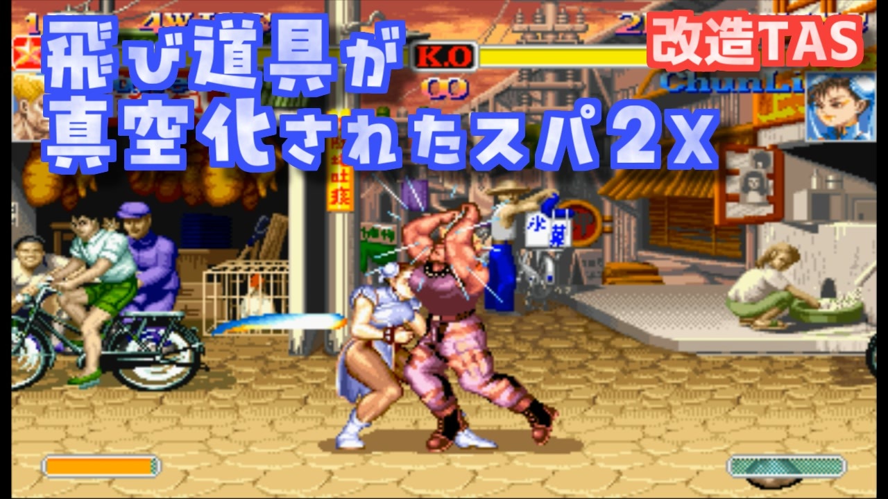 ※改造プレイです<br>スパ2Xをレインボーになるまで改造したい。<br>と言う事で、真空波動拳の要素を各キャラの飛び道具に付与し、スーパーコンボを同時当てしました。<br>スパ2歴3日なのでコンボとか何も知らないけど許して・・<br><br>使用ソフト:PS2版ハイパーストリートファイター2<br />動画に「いいね!」「マイリスト登録」よろしくお願いします。<br><br>・おすすめ<br>[TAS]Grand Theft Auto 3 Part1→<a href="https://www.nicovideo.jp/watch/sm14718961" class="watch">sm14718961</a><br>[TAS]MaxPayne デッドターゲット Part1→<a href="https://www.nicovideo.jp/watch/sm15093299" class="watch">sm15093299</a><br>[TAS]michigan Part1→<a href="https://www.nicovideo.jp/watch/sm18393230" class="watch">sm18393230</a><br><br>サポート頂けると励みになります<br>魔界塔士のサポーターになる→<a href="https://creator-support.nicovideo.jp/registration/15153622" target="_blank" rel="noopener nofollow">https://creator-support.nicovideo.jp/registration/15153622</a><br><br>TAS動画まとめ→<a href="https://koeiprogenitor.com/tas/matome/" target="_blank" rel="noopener nofollow">https://koeiprogenitor.com/tas/matome/</a><br>つべ→<a href="https://www.youtube.com/user/koeiprogenitor1/" target="_blank" rel="noopener nofollow">https://www.youtube.com/user/koeiprogenitor1/</a><br>インスタ→<a href="https://www.instagram.com/makaitoshi" target="_blank" rel="noopener nofollow">https://www.instagram.com/makaitoshi</a><br><br>本編→シリーズ一覧見てね<br>