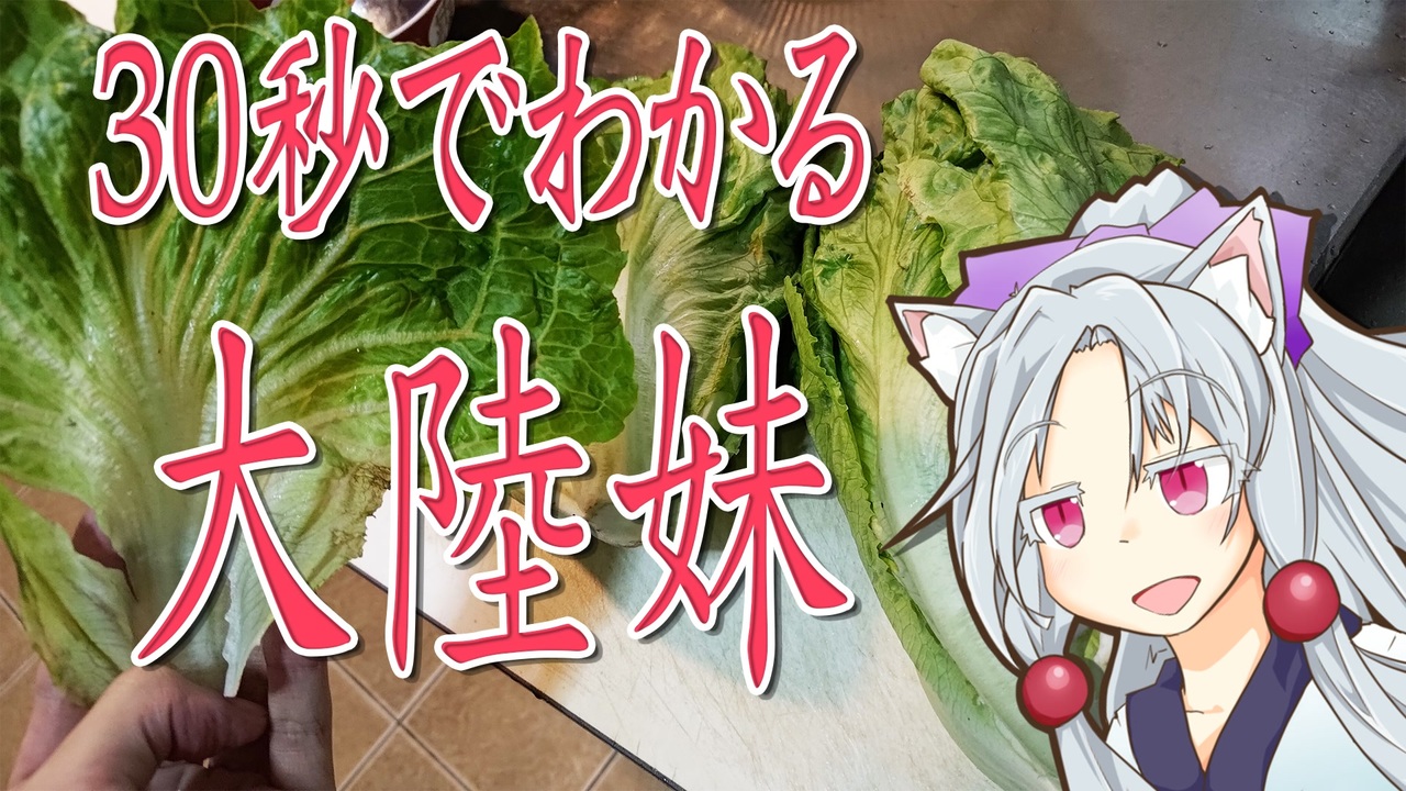台湾語では萵苣ことレタスをエアツアイまたはメアツアイと呼び、読み方の近いアルファベットの「A」と「妹」に転写されていますわ。一般的には「A菜」は台湾品種の萵苣を指して、大陸品種の萵苣は「大陸妹」と呼ばれていますわ。字面的にはいかがわしいですが、妹や女性とはまったく関係ないですわ。ただし近年は「中国から嫁いた女性を蔑みかねない」との理由で、大陸妹の正式名称、「福山萵苣」と呼ぶところも多くなってきた気がしますわ。<br><br>●動画リンク:<br>Youtube→<a href="https://www.youtube.com/watch?v=anvGsBsbmHY" target="_blank" rel="noopener nofollow">https://www.youtube.com/watch?v=anvGsBsbmHY</a><br>Niconico→<a href="https://www.nicovideo.jp/watch/sm43562284" target="_blank" rel="noopener nofollow">https://www.nicovideo.jp/watch/sm43562284</a><br><br>●立ち絵、挿し絵:<br>夏っぽい東北イタコ立ち絵(宙ノくじらさん)<br><br>●音楽、効果音:<br>Little Prelude and Fugue(Sir Cubworthさん)<br><br>|ボロボロ日本語シリーズ|<br><i><a href="https://www.nicovideo.jp/mylist/69207343" target="_blank" rel="noopener">mylist/69207343</a></i>