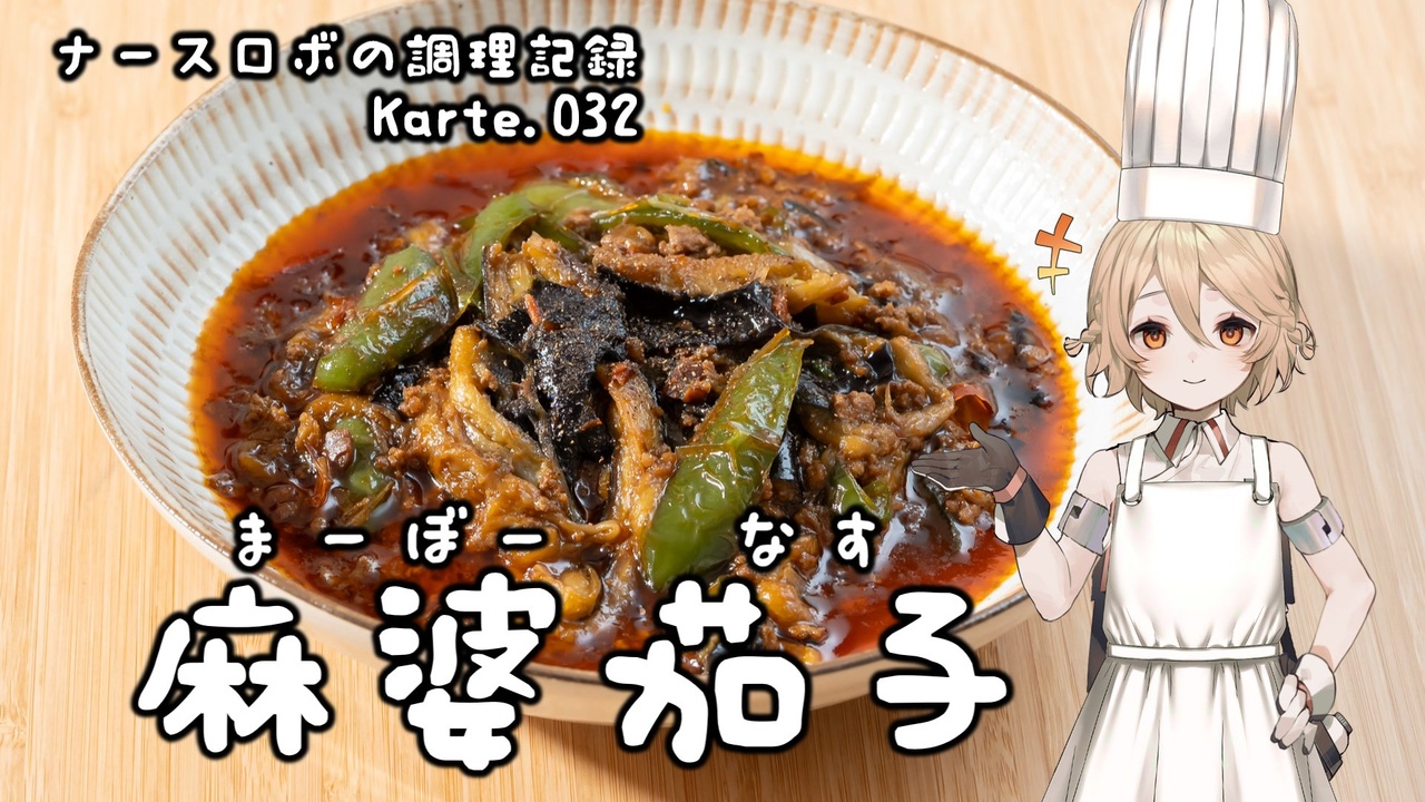 Part32はマーボーナス!<br>麻婆豆腐の影に隠れがちな料理ですが、お肉とナスを美味しく食べられる美味しい料理です!<br>素揚げの茄子は冷凍しておけば色々使えます。とっても便利。<br>ちょっと面倒ですが、風味がとっても良くなるので一度はお試しを!<br><br>炸醤のレシピはKarte.007を見てね!<br>→<a href="https://www.nicovideo.jp/watch/sm42800055" class="watch">sm42800055</a><br><br>音声: VOICEVOX:ナースロボ_タイプT<br>立ち絵: 捨て犬A<br>イラスト: いらすとや<br>SE: otologic, 効果音ラボ<br>BGM: BGMer<br /><br>[各種リンク]<br>ニコニコ動画: <a href="http://nicovideo.jp/user/130153578" target="_blank" rel="noopener nofollow">http://nicovideo.jp/user/130153578</a><br>YouTubeメイン(料理): <a href="http://youtube.com/@cooking25euph" target="_blank" rel="noopener nofollow">http://youtube.com/@cooking25euph</a><br>YouTubeサブ(料理以外): <a href="https://youtube.com/@sub25euph" target="_blank" rel="noopener nofollow">https://youtube.com/@sub25euph</a><br>X (twitter): <a href="https://twitter.com/nico25euph" target="_blank" rel="noopener nofollow">https://twitter.com/nico25euph</a><br>Bluesky: <a href="http://nico25euph.bsky.social" target="_blank" rel="noopener nofollow">http://nico25euph.bsky.social</a><br>TikTok: <a href="http://tiktok.com/@nico25euph" target="_blank" rel="noopener nofollow">http://tiktok.com/@nico25euph</a>