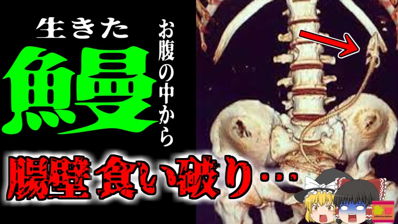 <a href="#" class="seekTime" data-seekTime="00:00" onclick="seekNicoPlayer('#00:00'); return false;">#00:00</a> OP<br><a href="#" class="seekTime" data-seekTime="00:07" onclick="seekNicoPlayer('#00:07'); return false;">#00:07</a> 「医療」<br><a href="#" class="seekTime" data-seekTime="1:42" onclick="seekNicoPlayer('#1:42'); return false;">#1:42</a> 視聴上の注意<br><a href="#" class="seekTime" data-seekTime="2:04" onclick="seekNicoPlayer('#2:04'); return false;">#2:04</a> 本編開始<br><a href="#" class="seekTime" data-seekTime="2:29" onclick="seekNicoPlayer('#2:29'); return false;">#2:29</a> 腹痛で緊急搬送された男性<br><a href="#" class="seekTime" data-seekTime="2:52" onclick="seekNicoPlayer('#2:52'); return false;">#2:52</a> CTスキャンに映った「謎の骨」<br><a href="#" class="seekTime" data-seekTime="3:44" onclick="seekNicoPlayer('#3:44'); return false;">#3:44</a> ウナギ<br><a href="#" class="seekTime" data-seekTime="4:37" onclick="seekNicoPlayer('#4:37'); return false;">#4:37</a> 恐ろしい民間療法<br><a href="#" class="seekTime" data-seekTime="5:37" onclick="seekNicoPlayer('#5:37'); return false;">#5:37</a> 「タウナギ」<br><a href="#" class="seekTime" data-seekTime="6:11" onclick="seekNicoPlayer('#6:11'); return false;">#6:11</a> 生きたウナギに腸壁を食い破られていた<br><a href="#" class="seekTime" data-seekTime="6:47" onclick="seekNicoPlayer('#6:47'); return false;">#6:47</a> 医師の注意喚起<br><br>今回紹介するのは、中国で発生した非常に珍しい事例の一つです。<br>広東省のとある病院にはこの日の夜、一人の成人男性が緊急搬送されてきました。<br>この男性は市内に暮らす「Aさん」。自宅で激しい腹痛に襲われ、悶絶している所を家族に発見され、救急車で緊急搬送されていました。<br>病院到着時には意識不明状態となっており、医師は直ちに処置を施し、CTスキャン検査を実施。<br>この検査はヒトの骨などを撮影する物でしたが、撮影された写真には、彼の骨だけではなく、細長い蛇のような「生き物」の骨が映し出されていました。<br>その骨は彼の腹腔にあり、医師は次に大腸内視鏡検査を実施し、その生き物が何なのかを確かめたところ、驚愕の事実が判明。<br>彼のS字結腸には大きな穴があき、そこには「タウナギ」という淡水魚が突き刺さり、彼の腹腔内で暴れまわっていたのです。<br>その穴から便が腹腔に漏れ出し、感染症を起こして、敗血症の症状までをも引き起こしていたため、すぐに摘出手術が開始されました<br>数時間に及ぶ大手術の末、なんとか彼は一命をとりとめることが出来ました。<br>彼の回復を待って、医師は症状を発症した経緯などを詳しく聞き取ると、なんとAさんは酷い便秘の症状に悩まされていたため、「知人から聞いたある民間療法を実践した」と話し…<br><br>引用・出展・参考文献<br>Wikipedia タウナギ<br><a href="https://ishort.ink/wZpJ" target="_blank" rel="noopener nofollow">https://ishort.ink/wZpJ</a><br><br>The Mirror <br>Man inserts 15-inch eel into rear in ‘folk remedy’ before it tears hole in his bowels<br><a href="https://ishort.ink/qEXt" target="_blank" rel="noopener nofollow">https://ishort.ink/qEXt</a><br><br><br />※この動画は過去の事件を知り、現在でも同じことが発生する危険性を再認識、関与しないように促すための動画であり、視聴者を扇動、動揺を誘うためのコンテンツではありません。<br><br>ご要望にお応えして、メンバーシップの開設を行いました。<br>下記URLからも登録可能ですので、ご興味がある方は是非ご参加ください。<br><a href="https://www.youtube.com/channel/UCcT5a1J7XJW7CLYI2RKl4pw/join" target="_blank" rel="noopener nofollow">https://www.youtube.com/channel/UCcT5a1J7XJW7CLYI2RKl4pw/join</a><br><br><br>Twitter<br>→<a href="https://twitter.com/yukkurisurutoko" target="_blank" rel="noopener nofollow">https://twitter.com/yukkurisurutoko</a><br><br>取り急ぎ、簡易的にですがマイリストを作りました。<br>【ゆっくり解説】事故・事件関係紹介リスト <br><a href="https://www.nicovideo.jp/mylist/71034319" target="_blank" rel="noopener nofollow">https://www.nicovideo.jp/mylist/71034319</a><br>【ゆっくり解説】放射線系事故<br><a href="https://www.nicovideo.jp/mylist/71034368" target="_blank" rel="noopener nofollow">https://www.nicovideo.jp/mylist/71034368</a><br>【ゆっくり解説】鉄道系事故・事件関連<br><a href="https://www.nicovideo.jp/mylist/71034379" target="_blank" rel="noopener nofollow">https://www.nicovideo.jp/mylist/71034379</a>