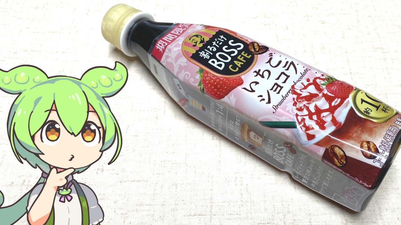 サントリーの「割るだけBOSS CAFE」という牛乳や水と割るだけで<br>お店のような飲み物が簡単に作れちゃうというシリーズから<br>期間限定のいちごショコラが登場。<br>目立つ位置に陳列されていたのでつい買ってしまいましたが…<br><br><br>【参考】<br>割るだけBOSS CAFE(サントリー)<br><a href="https://www.suntory.co.jp/softdrink/boss/warudake/" target="_blank" rel="noopener nofollow">https://www.suntory.co.jp/softdrink/boss/warudake/</a><br><br>【使用した素材】(※敬称略)<br>(合成音声)VOICEVOX/ずんだもん/四国めたん<br><a href="https://voicevox.hiroshiba.jp/" target="_blank" rel="noopener nofollow">https://voicevox.hiroshiba.jp/</a><br>(立ち絵)坂本アヒル<br><a href="https://seiga.nicovideo.jp/seiga/im10788496" target="_blank" rel="noopener">im10788496</a>/<a href="https://seiga.nicovideo.jp/seiga/im10791276" target="_blank" rel="noopener">im10791276</a><br>(楽曲)甘茶の音楽工房/「日々是好日」<br><a href="https://amachamusic.chagasi.com" target="_blank" rel="noopener nofollow">https://amachamusic.chagasi.com</a>