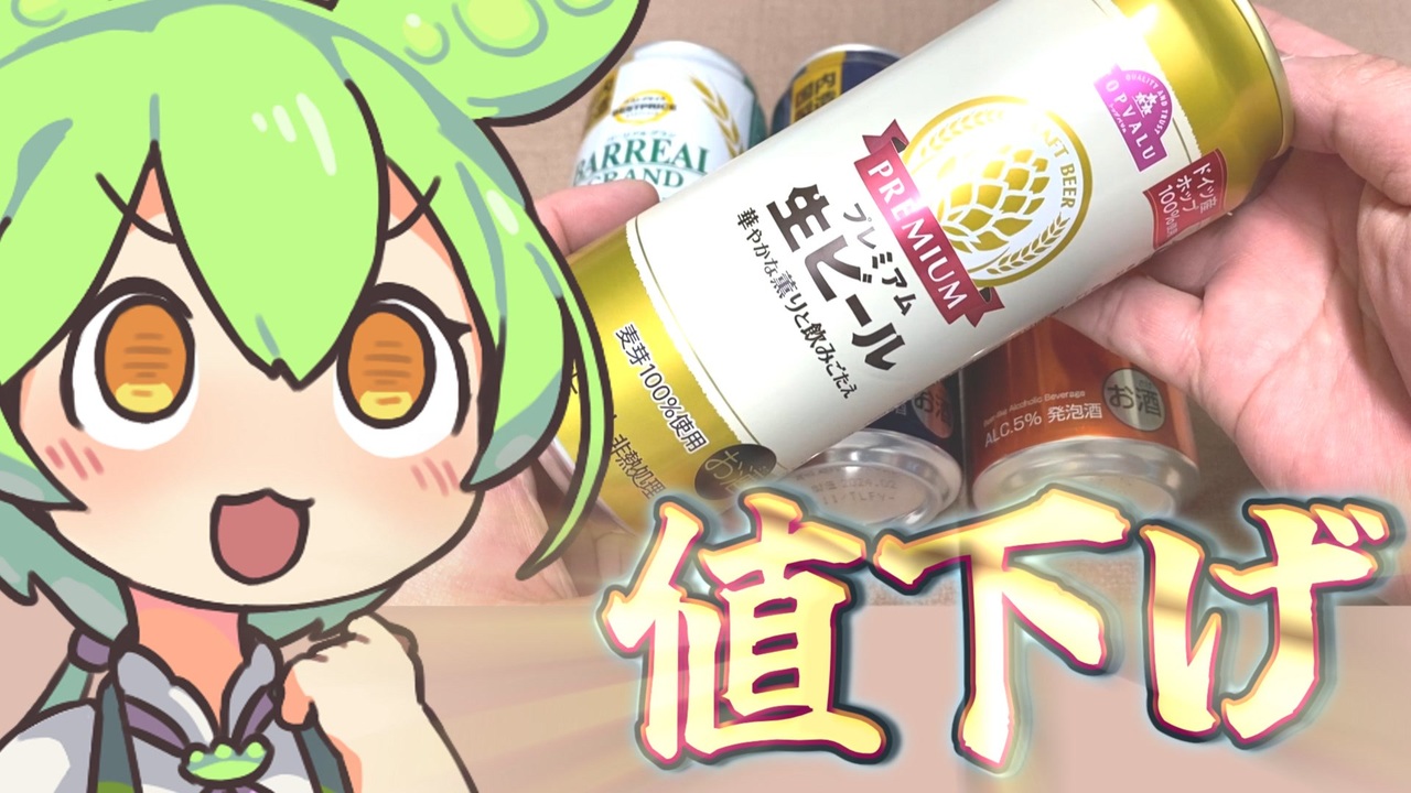 2024年3月26日にイオンからトップバリュ「厳選28品目」値下げ(3月27日から)<br>というアナウンスがありました。<br>2023年9月に第1弾、12月に第2弾があり今回が第3弾<br>プレミアム生ビールを一気に値下げしてくるとは思っていなくて驚きました。<br><br><br><br>【関連動画】<br>トップバリュの赤いヤツ「リニューアルしたプレミアム生ビール(500㎖)」<br><a href="https://www.nicovideo.jp/watch/sm42537340" target="_blank" rel="noopener nofollow">https://www.nicovideo.jp/watch/sm42537340</a><br>トップバリュの赤いヤツ「クラフトコーラとジンジャーエール」<br><a href="https://www.nicovideo.jp/watch/sm43335306" target="_blank" rel="noopener nofollow">https://www.nicovideo.jp/watch/sm43335306</a><br>イオンで買った半額のお惣菜「パッタイ」※クラフテル98円<br><a href="https://www.nicovideo.jp/watch/sm43524528" target="_blank" rel="noopener nofollow">https://www.nicovideo.jp/watch/sm43524528</a><br><br>【参考】<br>プレミアム生ビール500㎖(トップバリュ)<br><a href="https://www.topvalu.net/items/detail/4549414474688/" target="_blank" rel="noopener nofollow">https://www.topvalu.net/items/detail/4549414474688/</a><br>クラフトコーラ By19-Nineteen(トップバリュ)<br><a href="https://www.topvalu.net/items/detail/4549414543827/" target="_blank" rel="noopener nofollow">https://www.topvalu.net/items/detail/4549414543827/</a><br>トップバリュ「厳選28品目」値下げ 3月27日から※PDFファイル(イオン株式会社)<br><a href="https://www.aeon-hokkaido.jp/control-panel/wp-content/uploads/2024/03/news_20240326_4.pdf" target="_blank" rel="noopener nofollow">https://www.aeon-hokkaido.jp/control-panel/wp-content/uploads/2024/03/news_20240326_4.pdf</a><br>トップバリュ値下げ第2弾「厳選29品目」※PDFファイル(イオン株式会社)<br><a href="https://www.aeon.info/wp-content/uploads/news/pdf/2023/12/231212R_1.pdf" target="_blank" rel="noopener nofollow">https://www.aeon.info/wp-content/uploads/news/pdf/2023/12/231212R_1.pdf</a><br>トップバリュ「厳選31品目」を値下げ※PDFファイル(イオン株式会社)<br><a href="https://www.aeon.info/wp-content/uploads/news/pdf/2023/09/230925R_1.pdf" target="_blank" rel="noopener nofollow">https://www.aeon.info/wp-content/uploads/news/pdf/2023/09/230925R_1.pdf</a><br><br><br>【使用した素材】(※敬称略)<br>(合成音声)VOICEVOX/ずんだもん/四国めたん<br><a href="https://voicevox.hiroshiba.jp/" target="_blank" rel="noopener nofollow">https://voicevox.hiroshiba.jp/</a><br>(立ち絵)坂本アヒル<br><a href="https://seiga.nicovideo.jp/seiga/im10788496" target="_blank" rel="noopener">im10788496</a>/<a href="https://seiga.nicovideo.jp/seiga/im10791276" target="_blank" rel="noopener">im10791276</a><br>(楽曲)甘茶の音楽工房/「日々是好日」<br><a href="https://amachamusic.chagasi.com/" target="_blank" rel="noopener nofollow">https://amachamusic.chagasi.com/</a>