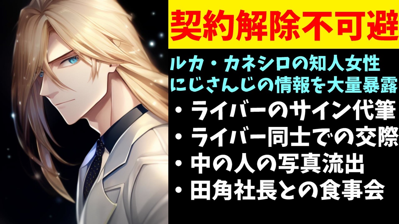 2024年3月30日、にじさんじENのルカ・カネシロの知人女性のRaziel Warmonicさんがルカ・カネシロ経由でのにじさんじの内部情報を大量に暴露されました。<br><br>引用<br><a href="https://twitter.com/RazielWarmonic/status/1773787213157077348" target="_blank" rel="noopener nofollow">https://twitter.com/RazielWarmonic/status/1773787213157077348</a><br><br>NIJISANJI EN (新) VTuber ルカ・カネシロ (Luca Kaneshiro) に関する文書 Raziel氏が公開<br><a href="https://twitter.com/P2y_jp/status/1773899493064466802" target="_blank" rel="noopener nofollow">https://twitter.com/P2y_jp/status/1773899493064466802</a><br><br>Youtube <a href="https://www.youtube.com/@V_Virgin_Mary" target="_blank" rel="noopener nofollow">https://www.youtube.com/@V_Virgin_Mary</a><br>twitter <a href="https://twitter.com/V_Virgin_Mary" target="_blank" rel="noopener nofollow">https://twitter.com/V_Virgin_Mary</a><br><br>使用素材<br>高品質なフリー動画素材 - Pixabay <a href="https://pixabay.com/ja/videos" target="_blank" rel="noopener nofollow">https://pixabay.com/ja/videos</a><br><br>#にじさんじ #ホロライブ #nijisanji #nijisanji_en #nijisanjien #vtuber #vtubers