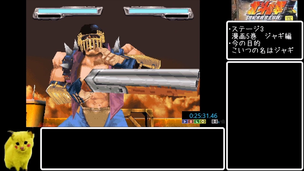 RTA第13弾はPS1 「北斗の拳世紀末救世主」です。<br><span style="color: #ff0000; font-size: 24px;"><strong>ヒャッハー!</strong></span><br><br>無編集版 <a href="https://youtu.be/7U1lqM4CxXE" target="_blank" rel="noopener nofollow">https://youtu.be/7U1lqM4CxXE</a><br><br>プレイ環境<br>実機 PS3<br><br>録画環境<br>キャプチャ機器 7160HD Capture HDMI<br>キャプチャソフト アマレコTV4.11<br>録画ソフト OBS30.1.0<br><br>前回 <a href="https://www.nicovideo.jp/watch/sm43571096" class="watch">sm43571096</a><br>次回 <a href="https://www.nicovideo.jp/watch/sm43631046" class="watch">sm43631046</a><br><br>今まで上げたRTA Part1リンク<a href="https://www.nicovideo.jp/mylist/71360071" target="_blank" rel="noopener">mylist/71360071</a><br><br>X:配信等のお知らせ <a href="https://twitter.com/nekochu0080" target="_blank" rel="noopener nofollow">https://twitter.com/nekochu0080</a><br>youtube:<a href="https://www.youtube.com/channel/UCnD18OOnsaeR2PO2DBfcnSg" target="_blank" rel="noopener nofollow">https://www.youtube.com/channel/UCnD18OOnsaeR2PO2DBfcnSg</a><br>twitch:<a href="https://www.twitch.tv/nekochu0" target="_blank" rel="noopener nofollow">https://www.twitch.tv/nekochu0</a>