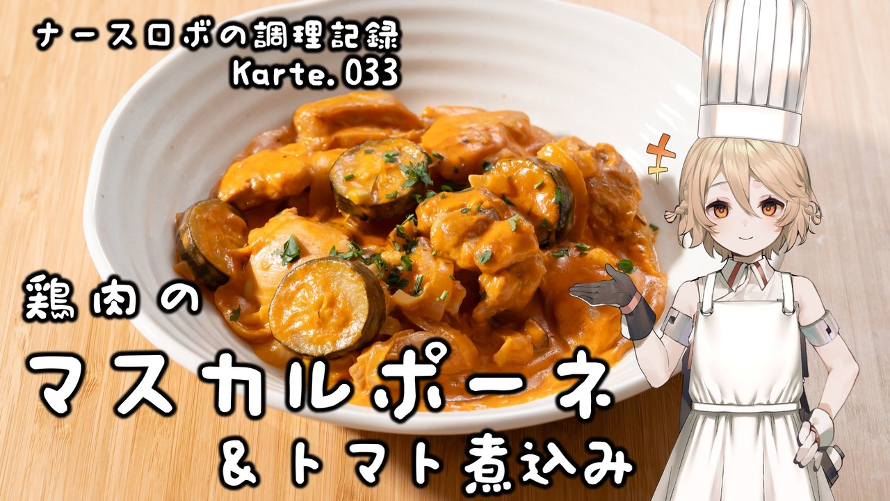 Part33は鶏肉のトマト煮にマスカルポーネチーズを加えた一品!<br>トマトソースを使うことで時短しています。<br>濃厚なトマト煮にマスカルポーネが入ってお上品な味に<br>皆さんもぜひ作ってみてくださいね。<br><br>トマトソースのレシピはKarte.005を見てね!<br>→<a href="https://www.nicovideo.jp/watch/sm42747957" class="watch">sm42747957</a><br><br>音声: VOICEVOX:ナースロボ_タイプT<br>立ち絵: 捨て犬A<br>イラスト: いらすとや<br>SE: otologic, 効果音ラボ<br>BGM: BGMer<br /><br>[各種リンク]<br>ニコニコ動画: <a href="http://nicovideo.jp/user/130153578" target="_blank" rel="noopener nofollow">http://nicovideo.jp/user/130153578</a><br>YouTubeメイン(料理): <a href="http://youtube.com/@cooking25euph" target="_blank" rel="noopener nofollow">http://youtube.com/@cooking25euph</a><br>YouTubeサブ(料理以外): <a href="https://youtube.com/@sub25euph" target="_blank" rel="noopener nofollow">https://youtube.com/@sub25euph</a><br>X (twitter): <a href="https://twitter.com/nico25euph" target="_blank" rel="noopener nofollow">https://twitter.com/nico25euph</a><br>Bluesky: <a href="http://nico25euph.bsky.social" target="_blank" rel="noopener nofollow">http://nico25euph.bsky.social</a><br>TikTok: <a href="http://tiktok.com/@nico25euph" target="_blank" rel="noopener nofollow">http://tiktok.com/@nico25euph</a>