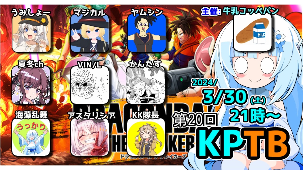 【あらすじ】<br>記念すべき第20回を迎えたKPTB。<br>久しぶりに名誉主催を引っ張り出して賑々しく行われた前半戦は、ブラック3連続スタート。<br>ダークフューチャーと言う新マップを舞台に、凄惨な討伐劇が行われるのか、それとも…?<br>次回「ノルマを果たせ」<br>絶対見てくれよな!<br><br>【登場人物】<br>夏色花梨先輩:撮れ高確保に情熱を燃やす実況少女。埼玉ギャル相手に(一方的な)百合営業しがち。<br>花隈千冬後輩:冷静沈着(?)なアシスタント。先輩が好き。<br><br>【参加者様(敬称略・頻出呼称)】<br>名誉主催:牛乳コッペパン <a href="https://www.nicovideo.jp/user/16788950" target="_blank" rel="noopener">user/16788950</a><br>かんたす(茜ちゃん) <a href="https://www.nicovideo.jp/user/418910" target="_blank" rel="noopener">user/418910</a> 全試合アーカイブ→<a href="https://live.nicovideo.jp/watch/lv344767194" target="_blank" rel="noopener">lv344767194</a><br>ヤムシン <a href="https://www.nicovideo.jp/user/21819424" target="_blank" rel="noopener">user/21819424</a> 全試合アーカイブ→<a href="https://live.nicovideo.jp/watch/lv344768385" target="_blank" rel="noopener">lv344768385</a><br>マジカル(メスガキ) <a href="https://www.nicovideo.jp/user/16043532" target="_blank" rel="noopener">user/16043532</a>(YouTubeの方に全試合アーカイブ有り)<br>眠い薬品@あすたりしあ(つむぎちゃん) <a href="https://www.nicovideo.jp/user/1937506" target="_blank" rel="noopener">user/1937506</a><br>海藻乱舞 <a href="https://www.nicovideo.jp/user/128788617" target="_blank" rel="noopener">user/128788617</a><br>うみしょーさん(あかりちゃん) <a href="https://www.nicovideo.jp/user/12591178" target="_blank" rel="noopener">user/12591178</a><br><br>【立ち絵】<br>からい先生 <a href="https://twitter.com/flat_fish_" target="_blank" rel="noopener nofollow">https://twitter.com/flat_fish_</a><br><br>【扉絵】<br>たれこ先生 <a href="https://twitter.com/tareko_ill" target="_blank" rel="noopener nofollow">https://twitter.com/tareko_ill</a><br><br>【アイコン】<br>ゆずらん先生 <a href="https://twitter.com/pafe_yuzuran" target="_blank" rel="noopener nofollow">https://twitter.com/pafe_yuzuran</a><br><br>【倍速時センター先輩】<br>カロ先生 <a href="https://seiga.nicovideo.jp/user/illust/120784349" target="_blank" rel="noopener">user/illust/120784349</a><br><br>【いいね忘れ防止】<br>こーすけさんたまりあ先生 <a href="https://twitter.com/kousuke_LP" target="_blank" rel="noopener nofollow">https://twitter.com/kousuke_LP</a><br><br>【使用ソフト】<br>CevioAI 夏色花梨<br>CevioAI 花隈千冬<br>synthesizerV 夏色花梨