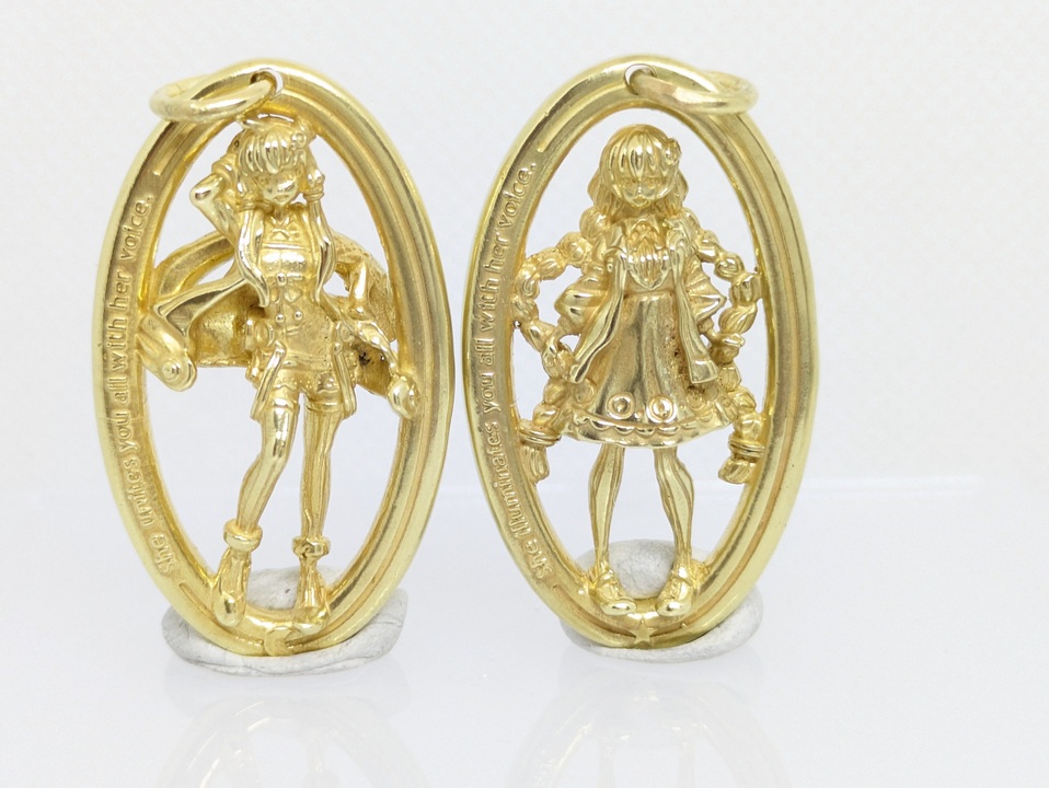 ロストワックス製法にて、VOICEROIDより、18金イエローゴールド製のゆかりさんあかりちゃんを製作しました。<br><br>また唐突に金細工作って見たかったということでひとつ。<br>今回は純金コインから18金地金を作り、鋳造することに挑戦しています。<br>推しの18金を作りたかった。<br><br>制作は、MoI3Dと3D-Coatの組み合わせでデジタル原型制作。<br>光造形機Phrozen Sonic Mini 8kで原型出力。<br>あとは頑張って複製と鋳造とロウ付けと研磨を行っています。<br>価格高すぎてイベント頒布はハードル高いですね。<br><br>前作→<a href="https://www.nicovideo.jp/watch/sm43478971" class="watch">sm43478971</a><br><br>製作品シリーズはこちらから。<br><a href="https://www.nicovideo.jp/series/303873" target="_blank" rel="noopener nofollow">https://www.nicovideo.jp/series/303873</a><br><br>twitter:@raku_raku_mでやってます。<br>販売やら過去作品展示はこちらで→<a href="https://www.rakugin.jp/" target="_blank" rel="noopener nofollow">https://www.rakugin.jp/</a><br>オーダー対応もやってます。<br>動画にあるように、しっかり手間暇かけて設計と鋳造、研磨まで一貫作業です。<br>