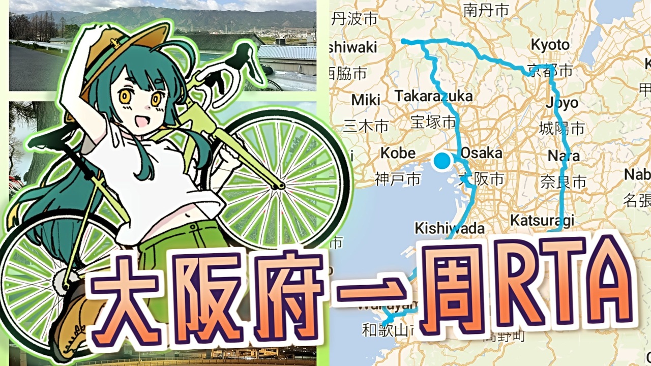 <span style="color: #6aa84f; font-size: 18px;">大阪府を自転車で一周してきました~<br>ついでに日本一の山に登ってきました~</span><br><br>■ 山行日:2024.3.8~9.<br>■ 第四回10秒動画祭:<a href="https://www.nicovideo.jp/watch/sm43609818" class="watch">sm43609818</a><br><br><span style="color: #cc0000; font-size: 24px;">2024年8月に、『自転車登山祭』を開催します!!<br>ご視聴・ご参加お待ちしております!!<br>告知 → <a href="https://www.nicovideo.jp/watch/sm43466073" class="watch">sm43466073</a></span><br><br>□ とりあえずコレ見て → チャリホバー分身RTA/<span style="font-size: 16px;"><u><a href="https://www.nicovideo.jp/watch/sm42413198" class="watch">sm42413198</a></u></span><br>□ 最高傑作 → 北アルプス薬師岳100%RTA/<span style="font-size: 16px;"><u><a href="https://www.nicovideo.jp/watch/sm43370792" class="watch">sm43370792</a></u></span><br>□ 最近投稿のゆるポタ → 北海道一周&百名山登山RTA/<span style="font-size: 16px;"><u><a href="https://www.nicovideo.jp/watch/sm40215086" class="watch">sm40215086</a></u></span><br>□ 本編シリーズ → <span style="font-size: 16px;"><u><a href="https://www.nicovideo.jp/series/89836" target="_blank" rel="noopener">series/89836</a></u></span><br>□ 全投稿動画 → <span style="font-size: 16px;"><u><a href="https://www.nicovideo.jp/mylist/68042003" target="_blank" rel="noopener">mylist/68042003</a></u></span><br><br><a target="_blank" href="https://qa.nicovideo.jp/faq/show/19424?site_domain=default" style="font-size: 13px;color: #657586; text-decoration: underline; line-height: 1.4">この動画は投稿者によって修正されました</a>