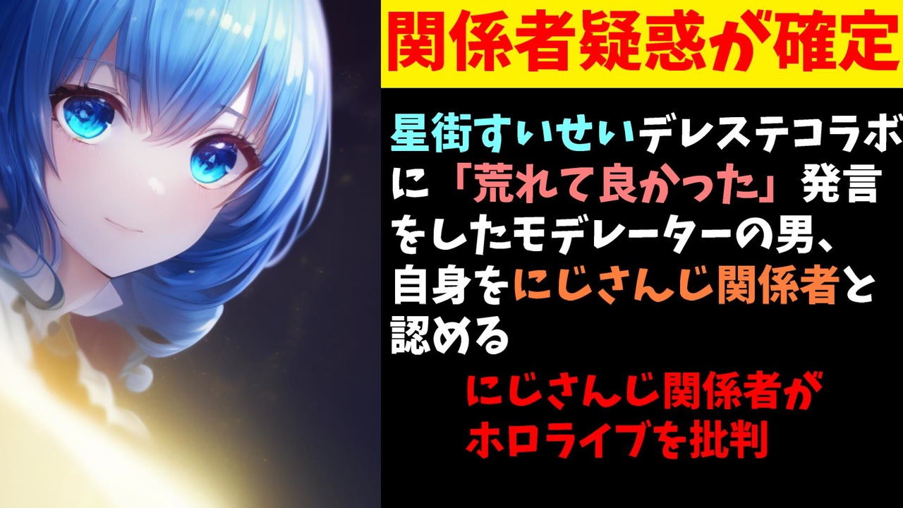 2024年4月3日、星街すいせいデレステコラボに対し荒れて良かったとツイートしていた男が自身がにじさんじ関係者であることを認めました。<br><br>引用<br><a href="https://twitter.com/ASHIKI_games/status/1775379594293747736" target="_blank" rel="noopener nofollow">https://twitter.com/ASHIKI_games/status/1775379594293747736</a><br><br>Youtube <a href="https://www.youtube.com/@V_Virgin_Mary" target="_blank" rel="noopener nofollow">https://www.youtube.com/@V_Virgin_Mary</a><br>twitter <a href="https://twitter.com/V_Virgin_Mary" target="_blank" rel="noopener nofollow">https://twitter.com/V_Virgin_Mary</a><br><br>使用素材<br>高品質なフリー動画素材 - Pixabay <a href="https://pixabay.com/ja/videos" target="_blank" rel="noopener nofollow">https://pixabay.com/ja/videos</a><br><br>#にじさんじ #ホロライブ #ぶいすぽ #切り抜き #ゆっくり解説 #VOICEROID #nijisanji #nijisanji_en #nijisanjien #vtuber #vtubers