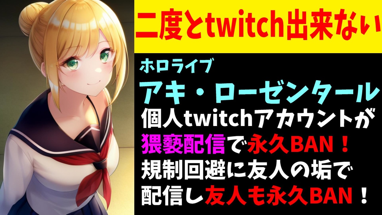 2024年4月4日、アキ・ローゼンタールさんのプライベートの友人の冬村ノエルさんのtwitchアカウントが永久BANされました。アキロゼさんは4月2日にプライベートアカウントで猥褻な配信をしたためにtwitchaアカウントがBAN。同日規制回避のために冬村さんのチャンネルに出演していたみたいなのですが…<br><br>引用<br><a href="https://twitter.com/TnLain/status/1775169971565572328" target="_blank" rel="noopener nofollow">https://twitter.com/TnLain/status/1775169971565572328</a><br><a href="https://twitter.com/TnLain/status/1775693440015274367" target="_blank" rel="noopener nofollow">https://twitter.com/TnLain/status/1775693440015274367</a><br><br>Youtube <a href="https://www.youtube.com/@V_Virgin_Mary" target="_blank" rel="noopener nofollow">https://www.youtube.com/@V_Virgin_Mary</a><br>twitter <a href="https://twitter.com/V_Virgin_Mary" target="_blank" rel="noopener nofollow">https://twitter.com/V_Virgin_Mary</a><br><br>使用素材<br>高品質なフリー動画素材 - Pixabay <a href="https://pixabay.com/ja/videos" target="_blank" rel="noopener nofollow">https://pixabay.com/ja/videos</a><br><br>#にじさんじ #ホロライブ #ぶいすぽ #切り抜き #ゆっくり解説 #VOICEROID #nijisanji #nijisanji_en #nijisanjien #vtuber #vtubers
