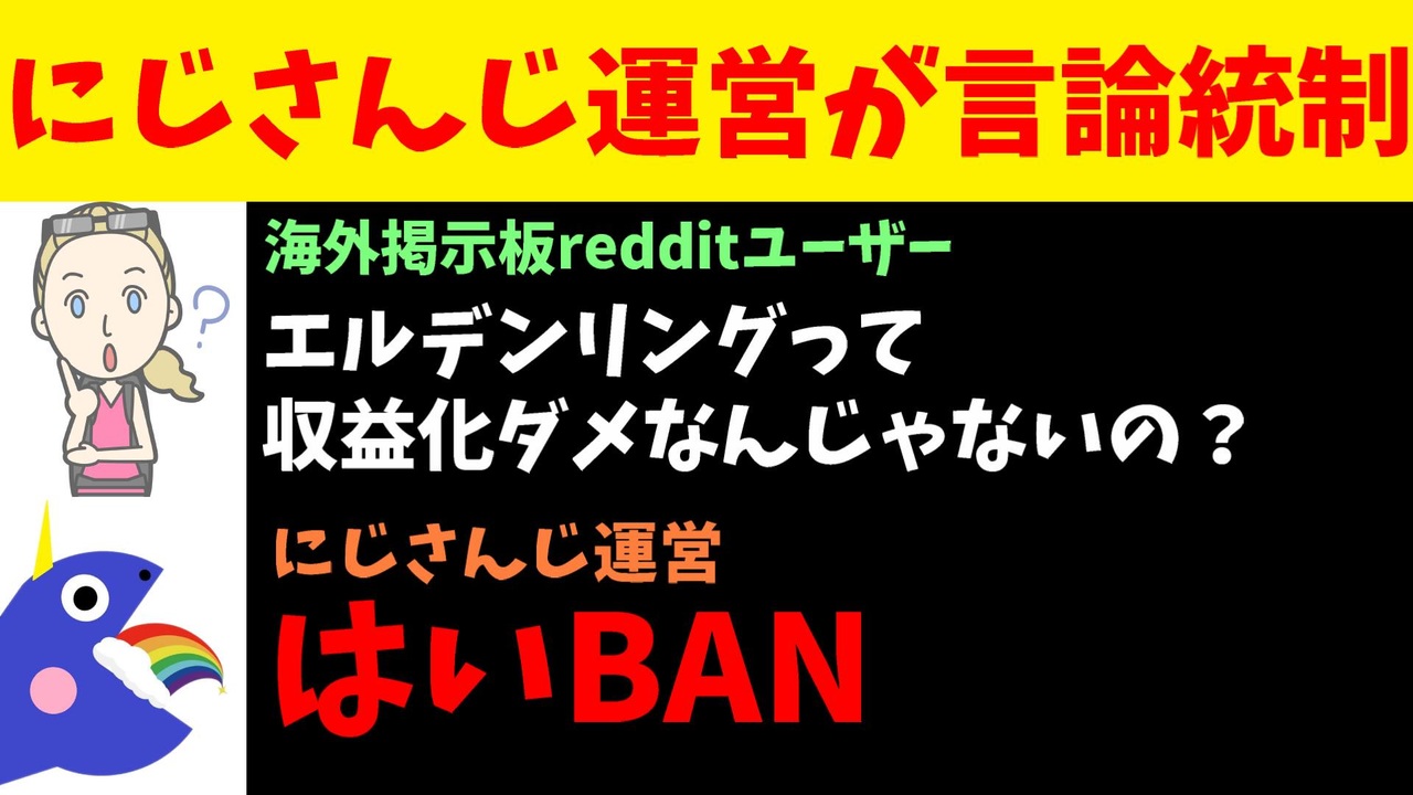 2024年4月3日、海外掲示板redditのにじさんじの公式スペースにおいて、アスター・アルカディアのエルデンリング収益化を指摘するスレッドを立てたユーザーが運営にBANされました。<br><br>引用<br><a href="https://undelete.pullpush.io/r/Nijisanji/new/" target="_blank" rel="noopener nofollow">https://undelete.pullpush.io/r/Nijisanji/new/</a><br><a href="https://playboard.co/en/channel/UCpzxZW5kghGnO5TmAFJQAVw/videos" target="_blank" rel="noopener nofollow">https://playboard.co/en/channel/UCpzxZW5kghGnO5TmAFJQAVw/videos</a><br><br>Youtube <a href="https://www.youtube.com/@V_Virgin_Mary" target="_blank" rel="noopener nofollow">https://www.youtube.com/@V_Virgin_Mary</a><br>twitter <a href="https://twitter.com/V_Virgin_Mary" target="_blank" rel="noopener nofollow">https://twitter.com/V_Virgin_Mary</a><br><br>使用素材<br>高品質なフリー動画素材 - Pixabay <a href="https://pixabay.com/ja/videos" target="_blank" rel="noopener nofollow">https://pixabay.com/ja/videos</a><br><br>#にじさんじ #ホロライブ #ぶいすぽ #切り抜き #ゆっくり解説 #VOICEROID #nijisanji #nijisanji_en #nijisanjien #vtuber #vtubers