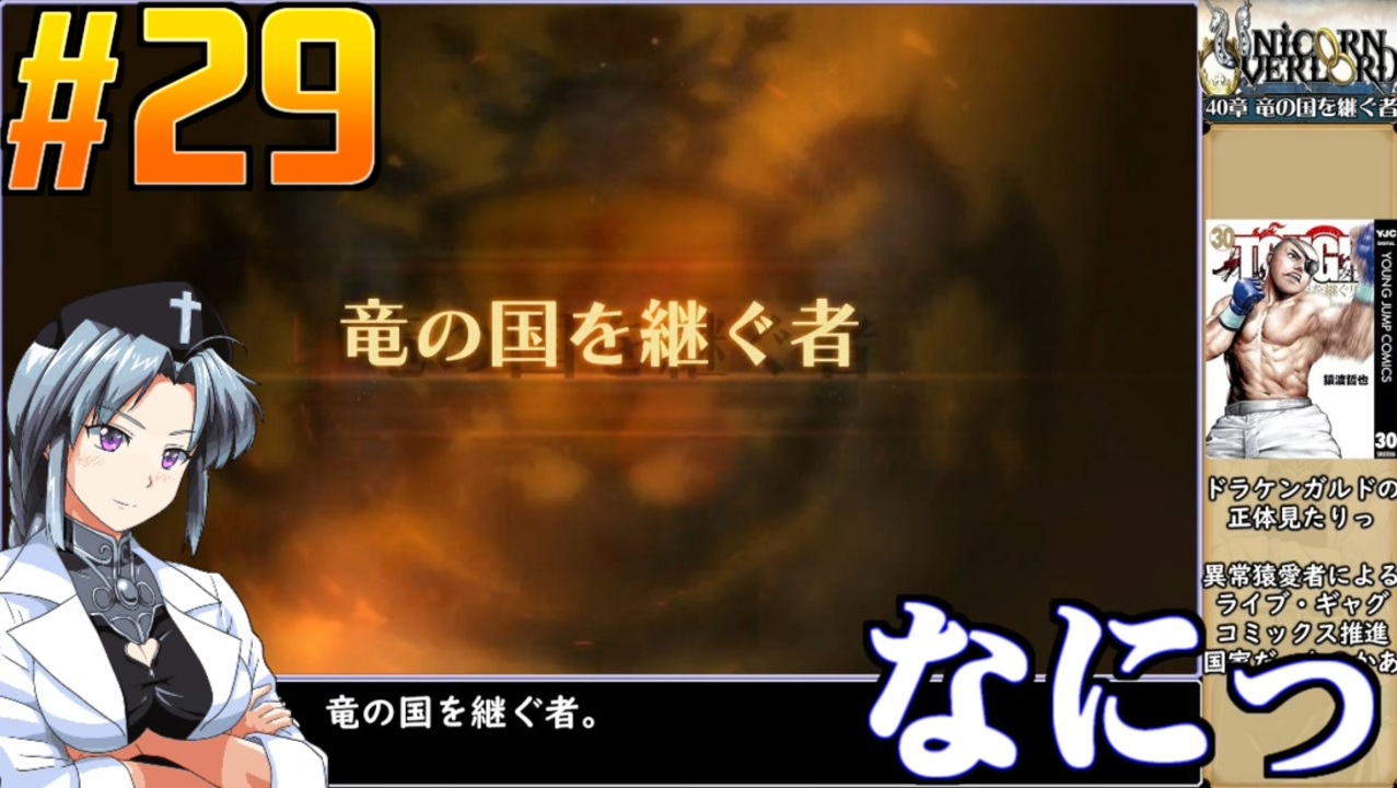初累計1000万部超、格闘漫画の金字塔なので初投稿です。<br>40章 竜の国を継ぐ者<br><br>◆ユニコーンオーバーロード(UNICORN OVERLORD)◆<br>©ATLUS ©SEGA<br>開発ヴァニラウェア・販売アトラスの戦術ロールプレイングゲーム。<br>コルニア王家の王子アレインによる故国再興の物語。<br>2024年3月8日発売。<br>桜乃そら実況プレイ動画(ネタバレあり)<br><br>◆ニコニコクリエイターサポート<br><a href="https://creator-support.nicovideo.jp/registration/1203831" target="_blank" rel="noopener nofollow">https://creator-support.nicovideo.jp/registration/1203831</a><br>動画制作の励みになります<br><br>◆Twitter<br><a href="https://twitter.com/ikamono8bit" target="_blank" rel="noopener nofollow">https://twitter.com/ikamono8bit</a><br>◆youtube<br><a href="http://www.youtube.com/c/IkamonoY" target="_blank" rel="noopener nofollow">http://www.youtube.com/c/IkamonoY</a><br><br>シリーズまとめ <a href="https://www.nicovideo.jp/user/1203831/series" target="_blank" rel="noopener nofollow">https://www.nicovideo.jp/user/1203831/series</a><br>作った動画全部 <a href="https://www.nicovideo.jp/mylist/42963985" target="_blank" rel="noopener">mylist/42963985</a><br>作った動画全部2<a href="https://www.nicovideo.jp/mylist/70404393" target="_blank" rel="noopener">mylist/70404393</a>