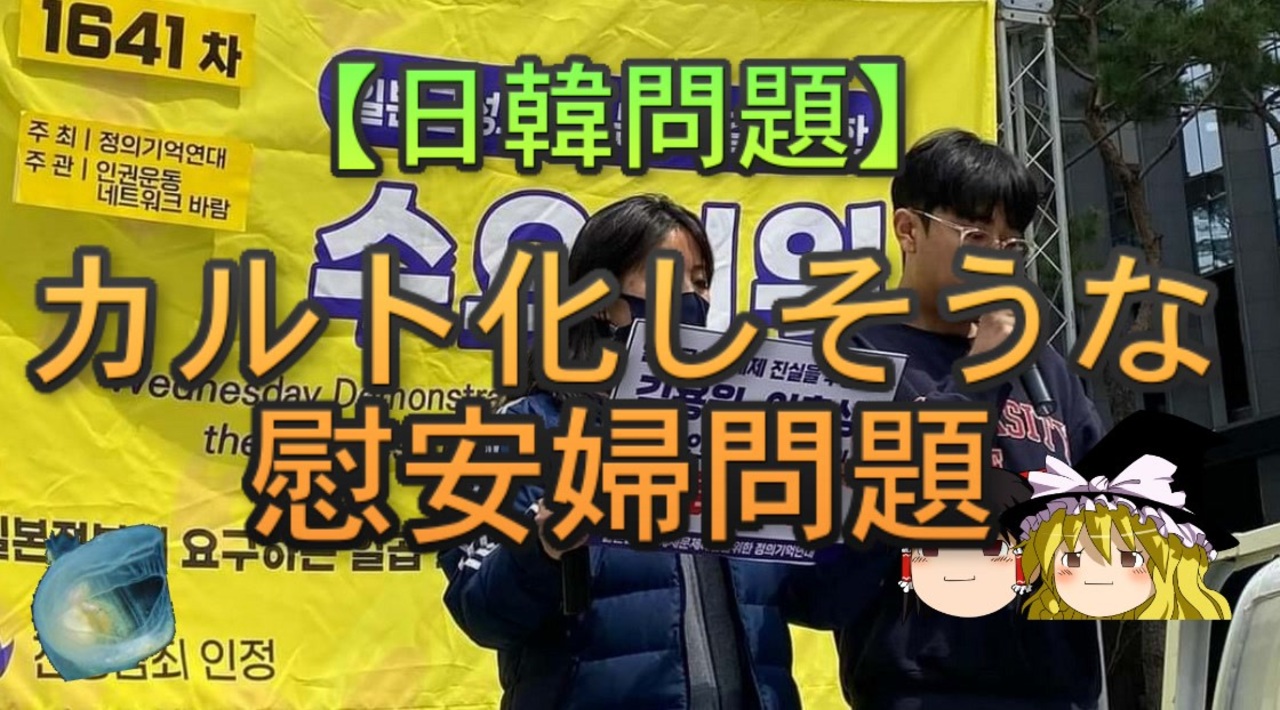 さて、本日は現在韓国で慰安婦問題がどのような状態なのかについて扱っていきます。<br>この季節は夕暮れ頃の東の空にどようびを見ることができます。<br>今回のブログ記事<br><a href="https://oogchib.hateblo.jp/entry/2024/04/07/210210" target="_blank" rel="noopener nofollow">https://oogchib.hateblo.jp/entry/2024/04/07/210210</a><br><br>元記事<br>カルト化していく慰安婦問題<br><a href="https://oogchib.hateblo.jp/entry/2023/11/30/022015" target="_blank" rel="noopener nofollow">https://oogchib.hateblo.jp/entry/2023/11/30/022015</a><br><br>関連動画<br>【ゆっくり解説】朝日新聞の慰安婦報道検証 part1/2<br><a href="https://www.nicovideo.jp/watch/sm40779826" class="watch">sm40779826</a><br>【ゆっくり解説】朝日新聞の慰安婦報道検証 part2/2<br><a href="https://www.nicovideo.jp/watch/sm40813181" class="watch">sm40813181</a><br><br><br>注意<br>・この動画は「日韓の価値観の違い」を扱っています<br><br>・うp主のスタンスは「価値観に善悪や優劣は存在しない」というものです<br><br>・相手が不法を働いているからとこちらが不法をして良い理由にはなりません<br><br>・自身の常識が相手にとっても常識とは限りません、「他者がそれを見たら<br>どう思うか」という客観性を常に持ちましょう。<br><br>・日常生活で注意する程度には言動に注意を心がけてください<br><br>・リクエストは原則受け付けていません<br><br>・引用ソースへのリンクが同時掲載のブログにあります<br><br>・毎週日曜日更新<br><br><br>引用ソースと動画のテキストをブログ日韓問題(初心者向け)のほうへ掲載しています。<br><br>日韓問題(初心者向け)<br><a href="https://oogchib.hateblo.jp/" target="_blank" rel="noopener nofollow">https://oogchib.hateblo.jp/</a><br><br>暇つぶしにどうぞ<br><a href="http://ooguchib.blog.fc2.com/" target="_blank" rel="noopener nofollow">http://ooguchib.blog.fc2.com/</a> <br><br>twitter @ooguchib<br><a href="https://twitter.com/ooguchib" target="_blank" rel="noopener nofollow">https://twitter.com/ooguchib</a><br><br>前 <a href="https://www.nicovideo.jp/watch/sm43601232" class="watch">sm43601232</a> <a href="https://www.nicovideo.jp/mylist/59069876" target="_blank" rel="noopener">mylist/59069876</a> 次 <a href="https://www.nicovideo.jp/watch/sm43659458" class="watch">sm43659458</a><br><br>番外編マイリスト<br><a href="https://www.nicovideo.jp/mylist/62992608" target="_blank" rel="noopener">mylist/62992608</a><br><br>YouTube版<br><a href="https://youtu.be/So6rUn-GVuo" target="_blank" rel="noopener nofollow">https://youtu.be/So6rUn-GVuo</a><br>