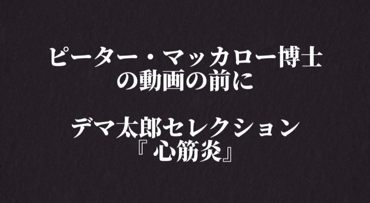 COVID-19ワクチン心筋炎が致命的な可能性があることを人々は理解しているのか? <br><br>医師、看護師、議員、その他の人々の怒りはどこにあるのか? <br><br>Do people understand that COVID-19 vaccine myocarditis is potentially fatal? Where is the outrage among doctors, nurses, lawmakers, others? @drcraigwax @joerogan @elonmusk @bradwenstrup @RepMTG @SenRonJohnson @FLSurgeonGen @ACCinTouch @American_Heart @escardio @MakisMD<br><br><a href="https://twitter.com/P_McCulloughMD/status/1776237479311634926?t=rWmxqXUHTw_9t9Qz5Ymgow&s=19" target="_blank" rel="noopener nofollow">https://twitter.com/P_McCulloughMD/status/1776237479311634926?t=rWmxqXUHTw_9t9Qz5Ymgow&s=19</a><br><br><br>河野太郎がデマ太郎になる過程で飛び出した代表的かつ重要なデマ『ワクチン接種後の心筋炎は軽症&反ワクこき下ろし』。… <br><a href="https://t.co/HOMvMNPNc8" target="_blank" rel="noopener nofollow">https://t.co/HOMvMNPNc8</a><br><br><br><br>新型コロナウイルス ワクチン ピーター・マッカロー博士 心筋炎 ワクチン後遺症 ワクチン心筋炎 ワクチン副作用 ワクチン副反応 mRNAワクチン 遺伝子製剤 河野太郎 デマ太郎 反ワク 陰謀論 情弱 情報弱者 テレビ洗脳 情報鎖国 検閲 言論弾圧<br><br><br><br />著作権、肖像権に配慮して作成しております。<br><br>◆気になったニュースの台本!?<br>メモ代わりに作った台本をそのままあげてます<br><a href="https://keiichiro8140.hatenablog.com/." target="_blank" rel="noopener nofollow">https://keiichiro8140.hatenablog.com/.</a><br><br><br>ここからはシリーズ紹介<br><br><br>◆ ワクチン解毒・デトックス<br><a href="https://x.gd/fZweg" target="_blank" rel="noopener nofollow">https://x.gd/fZweg</a><br><br>◆ウイリアム・マキス博士のがん治療(イベルメクチン・フェンベンダゾール等)<br><a href="https://x.gd/AtFYS" target="_blank" rel="noopener nofollow">https://x.gd/AtFYS</a><br><br>◆予防接種健康被害救済制度<br><a href="https://x.gd/0xK9x" target="_blank" rel="noopener nofollow">https://x.gd/0xK9x</a><br><br>◆気になったニュース #1501~<br><br>◆ 【ショートver】気になったニュース<br><a href="https://x.gd/7MxXC" target="_blank" rel="noopener nofollow">https://x.gd/7MxXC</a><br><br>◆ 気になったニュース #1001~<br><a href="https://x.gd/Lp8gv" target="_blank" rel="noopener nofollow">https://x.gd/Lp8gv</a><br><br>◆ 気になったニュース #501~<br><a href="https://x.gd/EmbS4" target="_blank" rel="noopener nofollow">https://x.gd/EmbS4</a><br><br>◆ 気になったニュース #1~#500<br><a href="https://x.gd/uPhNb" target="_blank" rel="noopener nofollow">https://x.gd/uPhNb</a><br><br>◆ X(旧Twitter)・テレグラムで気になった情報<br><a href="https://x.gd/YG6FT" target="_blank" rel="noopener nofollow">https://x.gd/YG6FT</a><br><br>◆ 日比谷5万人パレードデ⚪生放送アーカイブ動画<br><a href="https://x.gd/3CHJv" target="_blank" rel="noopener nofollow">https://x.gd/3CHJv</a><br><br>◆日比谷5万人パレード⚪モのマイリスト作ってみました<br><a href="https://nico.ms/mylist/76828848?ref=sp_other" target="_blank" rel="noopener nofollow">https://nico.ms/mylist/76828848?ref=sp_other</a><br><br>◆3.30 令和の百姓⚪⚪<br><a href="https://www.nicovideo.jp/series/511791?ref=garage_share_other" target="_blank" rel="noopener nofollow">https://www.nicovideo.jp/series/511791?ref=garage_share_other</a><br><br>◆ 及川幸久さんの【XNEWS】シリーズ<br><a href="https://x.gd/3k78K" target="_blank" rel="noopener nofollow">https://x.gd/3k78K</a><br><br>◆これまでの動画<a href="https://x.gd/sPXoJ" target="_blank" rel="noopener nofollow">https://x.gd/sPXoJ</a><br><br>◆もしも(BAN)の時のためのマイリンク集<a href="https://lit.link/K-16_News44" target="_blank" rel="noopener nofollow">https://lit.link/K-16_News44</a><br><br>