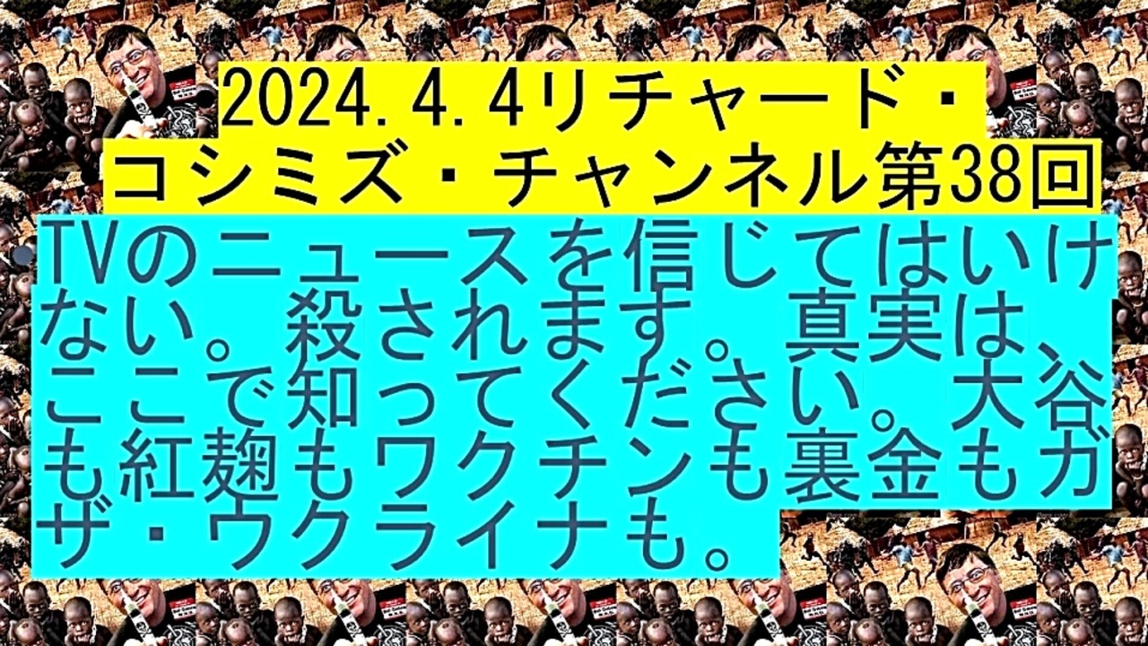 <span style="color: #ff0000;"><strong>「『 TVのニュース 』を『 信じてはいけない 』。『 殺されます 』。『 真実 』は、ここで知って下さい。<br> 『 大谷 』も『 紅麹 』も『 ワクチン 』も『 裏金 』も『 ガザ・ウクライナ 』も 」</strong></span><br><br><span style="color: #38761d;"><strong> ◐ リチャード・コシミズ・チャンネル⦅ ニコニコ チャンネル ⦆</strong></span><br> <span style="color: #0000ff;"><strong><a href="https://ch.nicovideo.jp/richardkoshimizu" target="_blank" rel="noopener nofollow">https://ch.nicovideo.jp/richardkoshimizu</a></strong></span><br><br><span style="color: #38761d;"><strong> ◐ リチャード・コシミズ『 ニコニコ生放送⦅ LIVE ⦆』</strong></span> <br> <span style="color: #0000ff;"><strong><a href="https://www.nicovideo.jp/user/120930363/live_programs" target="_blank" rel="noopener nofollow">https://www.nicovideo.jp/user/120930363/live_programs</a></strong></span><br><br><span style="color: #38761d;"><strong> ◐ リチャード・コシミズ『 Rumble 』公式 動画ギャラリー</strong></span><br> <span style="color: #0000ff;"><strong><a href="https://rumble.com/user/richardkoshimizu" target="_blank" rel="noopener nofollow">https://rumble.com/user/richardkoshimizu</a></strong></span><br><br><span style="color: #38761d;"><strong> ◐ リチャード・コシミズ『 ニコニコ動画⦅ 全動画 ⦆』公式 動画ギャラリー</strong></span><br> <span style="color: #0000ff;"><strong><a href="https://www.nicovideo.jp/user/121957117/video" target="_blank" rel="noopener nofollow">https://www.nicovideo.jp/user/121957117/video</a></strong></span><br> <br><span style="color: #38761d;"><strong> ◐ リチャード・コシミズ『 ニコニコ動画⦅ 333 ~ ⦆』公式 動画ギャラリー</strong></span><br> <span style="color: #0000ff;"><strong><a href="https://www.nicovideo.jp/user/121028600/video" target="_blank" rel="noopener nofollow">https://www.nicovideo.jp/user/121028600/video</a></strong></span><br><br>