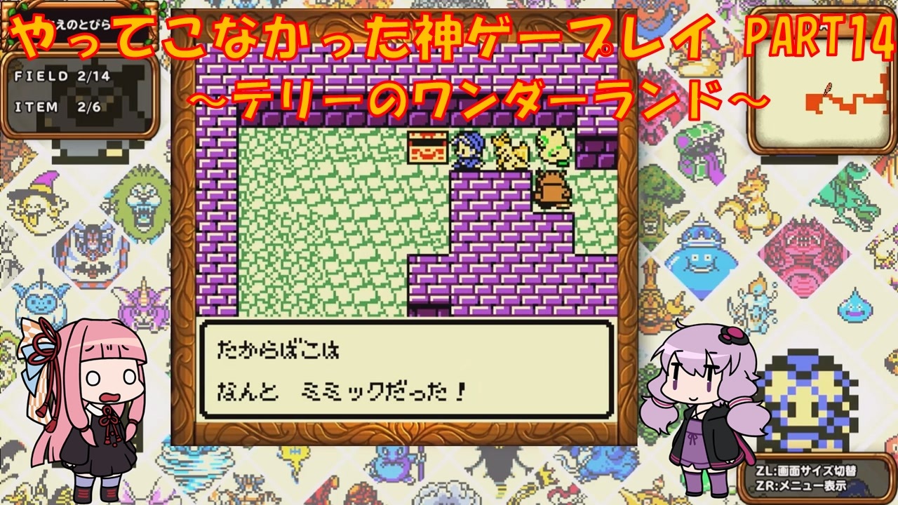 Switch版 テリーのワンダーランドレトロをプレイ<br>ゆかりさんはメジャーじゃないゲームをやる俺カッケー族だったのでドラクエをやったことがありませんでした(DSのⅤ以外)<br><br>茜:ふぁ!?<br>ゆ:ザラキザラキメラゾーマ<br><br>PART1:<a href="https://www.nicovideo.jp/watch/sm43525709" target="_blank" rel="noopener nofollow">https://www.nicovideo.jp/watch/sm43525709</a><br><br>各DQシリーズ第1回リンク<br>DQ1 PART1:<a href="https://www.nicovideo.jp/watch/sm41819145" target="_blank" rel="noopener nofollow">https://www.nicovideo.jp/watch/sm41819145</a><br>DQ2 PART1:<a href="https://www.nicovideo.jp/watch/sm41895278" target="_blank" rel="noopener nofollow">https://www.nicovideo.jp/watch/sm41895278</a><br>DQ3 PART1:<a href="https://www.nicovideo.jp/watch/sm42034398" target="_blank" rel="noopener nofollow">https://www.nicovideo.jp/watch/sm42034398</a><br>DQ4 PART1:<a href="https://www.nicovideo.jp/watch/sm42520974" target="_blank" rel="noopener nofollow">https://www.nicovideo.jp/watch/sm42520974</a><br>DQ5 PART1:<a href="https://www.nicovideo.jp/watch/sm42848575" target="_blank" rel="noopener nofollow">https://www.nicovideo.jp/watch/sm42848575</a><br>DQ6 PART1:<a href="https://www.nicovideo.jp/watch/sm43080264" target="_blank" rel="noopener nofollow">https://www.nicovideo.jp/watch/sm43080264</a><br><br>動画内で使用させていただいた素材<br>【イラスト】<br>結月ゆかり→山栗鼠様:<a href="https://seiga.nicovideo.jp/seiga/im5354179" target="_blank" rel="noopener nofollow">https://seiga.nicovideo.jp/seiga/im5354179</a><br>琴葉茜→山栗鼠様:<a href="https://seiga.nicovideo.jp/seiga/im5342445" target="_blank" rel="noopener nofollow">https://seiga.nicovideo.jp/seiga/im5342445</a><br><br>【音声】<br>A.I.Voice:琴葉茜<br><a href="https://aivoice.jp/product/kotonoha/" target="_blank" rel="noopener nofollow">https://aivoice.jp/product/kotonoha/</a><br><br>A.I.Voice:結月ゆかり<br><a href="https://aivoice.jp/product/yukari/" target="_blank" rel="noopener nofollow">https://aivoice.jp/product/yukari/</a><br><br>【その他素材】<br>効果音ラボ様:<a href="https://soundeffect-lab.info/" target="_blank" rel="noopener nofollow">https://soundeffect-lab.info/</a><br>いらすとや様:<a href="https://www.irasutoya.com/" target="_blank" rel="noopener nofollow">https://www.irasutoya.com/</a><br>甘茶の音楽工房様:<a href="https://amachamusic.chagasi.com/image_bukimi.html" target="_blank" rel="noopener nofollow">https://amachamusic.chagasi.com/image_bukimi.html</a><br>等<br><br>この動画で利用している株式会社スクウェア・エニックスを代表とする共同著作者が権利を所有する著作物及びスギヤマ工房有限会社が権利を所有する楽曲の転載・配布は禁止いたします。<br>© ARMOR PROJECT/BIRD STUDIO/SQUARE ENIX All Rights Reserved.<br>© SUGIYAMA KOBO