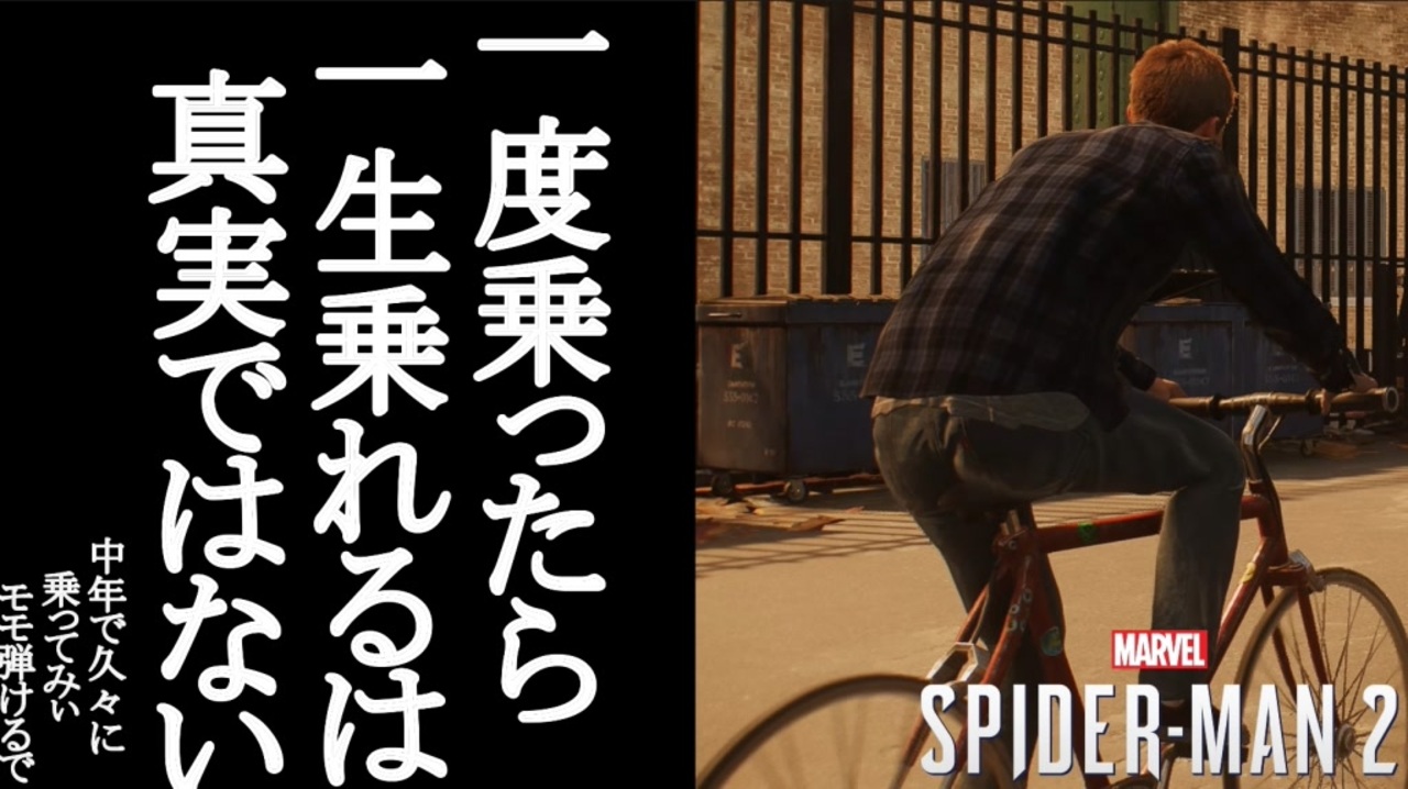 《自転車は変わらんが己が変わるんだよ》<br>難易度ノーマル<br>2160p環境で撮影 <br>検索用 スパイダーマン2<br><br>一度乗ったら「定期的に(出来れば継続的に)乗って準備運動を欠かさず体力に見合った距離なら」一生乗れる。<br><br>動画投稿報告用ツイッター <a href="https://twitter.com/DHoukoku" target="_blank" rel="noopener nofollow">https://twitter.com/DHoukoku</a><br>YouTubeもあるでよ(4Kやっとります) <a href="https://goo.gl/sLd2i1" target="_blank" rel="noopener nofollow">https://goo.gl/sLd2i1</a><br><br>全Part1リストはこちら→<a href="https://www.nicovideo.jp/mylist/23578874" target="_blank" rel="noopener">mylist/23578874</a><br><br><a href="https://www.nicovideo.jp/watch/sm43635738" class="watch">sm43635738</a>←前 次→<a href="https://www.nicovideo.jp/watch/sm43653150" class="watch">sm43653150</a><br><a href="https://www.nicovideo.jp/watch/sm43614083" class="watch">sm43614083</a>←Part1