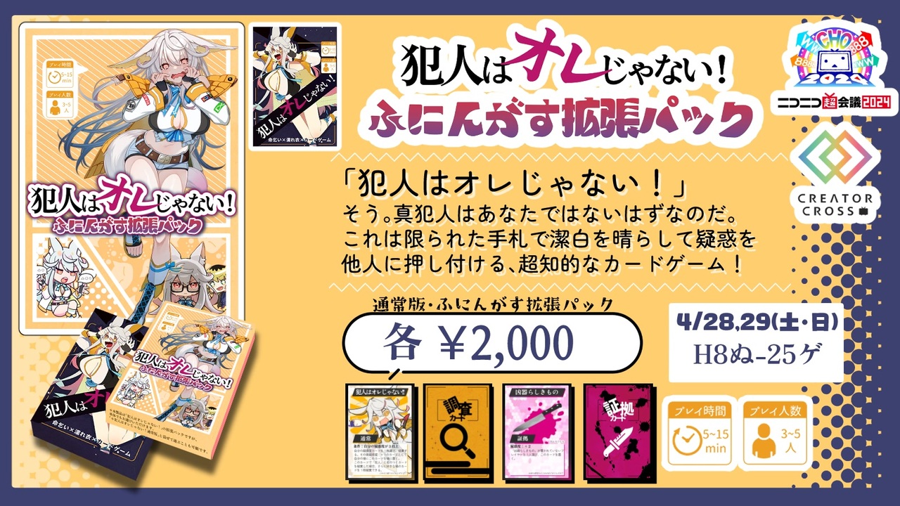 <span style="font-size: 18px;"><strong>犯人はオレじゃない!ココフォリア版⇒<a href="https://nihonngoyomenai.booth.pm/items/5312766" target="_blank" rel="noopener nofollow">https://nihonngoyomenai.booth.pm/items/5312766</a><br><br>超会議サイト⇒<a href="https://chokaigi.jp/2024/creatorcross/0114/" target="_blank" rel="noopener nofollow">https://chokaigi.jp/2024/creatorcross/0114/</a></strong></span><br><br>パッケージデザイン:らいむ理事長様<br>表紙イラスト:げる様<br><br>投稿したTRPG動画第一話集→<a href="https://www.nicovideo.jp/mylist/53857218" target="_blank" rel="noopener">mylist/53857218</a> <br>Twitter→<a href="https://twitter.com/nikoraiTRPG" target="_blank" rel="noopener nofollow">https://twitter.com/nikoraiTRPG</a><br>YouTubeチャンネル→<a href="https://www.youtube.com/channel/UCx75tsELw0rmXG5i2_sXf4g?view_as=subscriber" target="_blank" rel="noopener nofollow">https://www.youtube.com/channel/UCx75tsELw0rmXG5i2_sXf4g?view_as=subscriber</a><br>BOOTH:<a href="https://nihonngoyomenai.booth.pm/" target="_blank" rel="noopener nofollow">https://nihonngoyomenai.booth.pm/</a><br>メロブ:<a href="https://www.melonbooks.co.jp/circle/index.php?circle_id=101170" target="_blank" rel="noopener nofollow">https://www.melonbooks.co.jp/circle/index.php?circle_id=101170</a><br><br><span style="color: #000000; font-size: 14px;">お借りした素材元様<br>ニコニココモンズの皆様 </span>