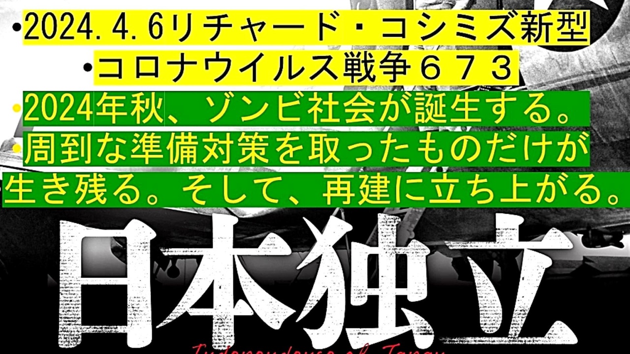 <span style="color: #cc4125;"><strong>「 テーマ : 新型コロナウイルス戦争 673 - ② 」</strong></span><br><br><span style="color: #ff0000;"><strong>「『 2024年 秋 』、『 ゾンビ社会 』が『 誕生 』する。『 周到な準備対策 』をとったものだけが<br> 『 生き残る 』。そして、『 再建 』に『 立ち上がる 』」</strong></span><br><br> <span style="color: #0000ff;"><strong>◐『 イベルメクチン・アビガン服用後 』の体験談等をお寄せ下さい。RK</strong></span><br> <span style="color: #0000ff;"><strong>E-mail : richardkoshimizu@gmail.com</strong></span><br><br> <span style="color: #38761d;"><strong>◐ リチャード・コシミズ・チャンネル『⦅ ニコニコ チャンネル ⦆』</strong></span><br> <span style="color: #0000ff;"><strong><a href="https://ch.nicovideo.jp/richardkoshimizu" target="_blank" rel="noopener nofollow">https://ch.nicovideo.jp/richardkoshimizu</a></strong></span><br><br><span style="color: #38761d;"><strong> ◐ リチャード・コシミズ『 ニコニコ生放送⦅ LIVE ⦆』</strong></span><br> <span style="color: #0000ff;"><strong><a href="https://www.nicovideo.jp/user/120930363/live_programs" target="_blank" rel="noopener nofollow">https://www.nicovideo.jp/user/120930363/live_programs</a></strong></span><br><br> <span style="color: #38761d;"><strong>◐ リチャード・コシミズ『 Rumble 』公式 動画ギャラリー</strong></span><br> <span style="color: #0000ff;"><strong><a href="https://rumble.com/user/richardkoshimizu" target="_blank" rel="noopener nofollow">https://rumble.com/user/richardkoshimizu</a></strong></span><br><br>