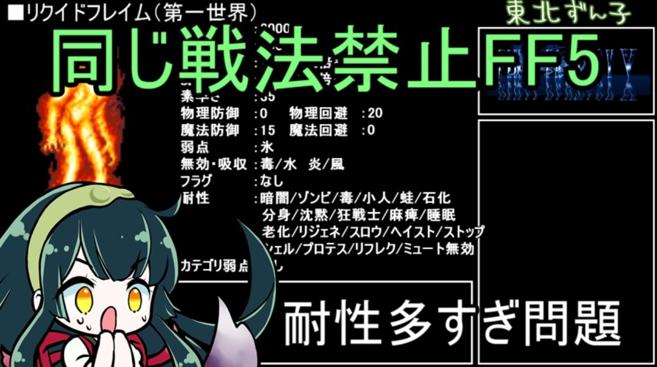 SFCソフト「FINALFANTASY5」に登場するボスを戦法の被りなしで撃破するやり込み動画シリーズの解説です。<br>縛り内容は解説動画見て下さい。<br><a href="https://www.nicovideo.jp/watch/sm43541277" target="_blank" rel="noopener nofollow">https://www.nicovideo.jp/watch/sm43541277</a><br><br>■今回の範囲<br>ウォルスの塔~古代図書館まで。10:40付近に再エンコしても消えないノイズがあるので音量小さ目推奨。<br><br>■低レベル攻略<br>Lv2114型。ジョブアビリティ縛りはしません。<br><br>■攻略時の制約<br>・投げるは基本的に禁止(とあるボス戦でのみ使用。投げられる武器を持ってるボスが悪い)<br>・調合は部分的に禁止(使う時は説明します)<br>・エクスデスへのファイナルアタック封じ禁止<br>・エンディングが正常に終わらないケースを禁止<br>・その時にしか使用できない戦法を最優先<br>・はなつ/魔法のランプなど無消費大ダメージ手段禁止<br>・武器装備入れ替えによる分身維持禁止<br><br>とりあえず実機で出来ることは何でも利用してボスをやっつけちゃいます。<br><br>プレイ環境:スーパーファミコン(SHVC-001)<br>コントローラ:通常、連射パッドなし<br>録画環境 :ELEVIEW コンポジット/S端子 to HDMI 変換器+GC551PLUS
