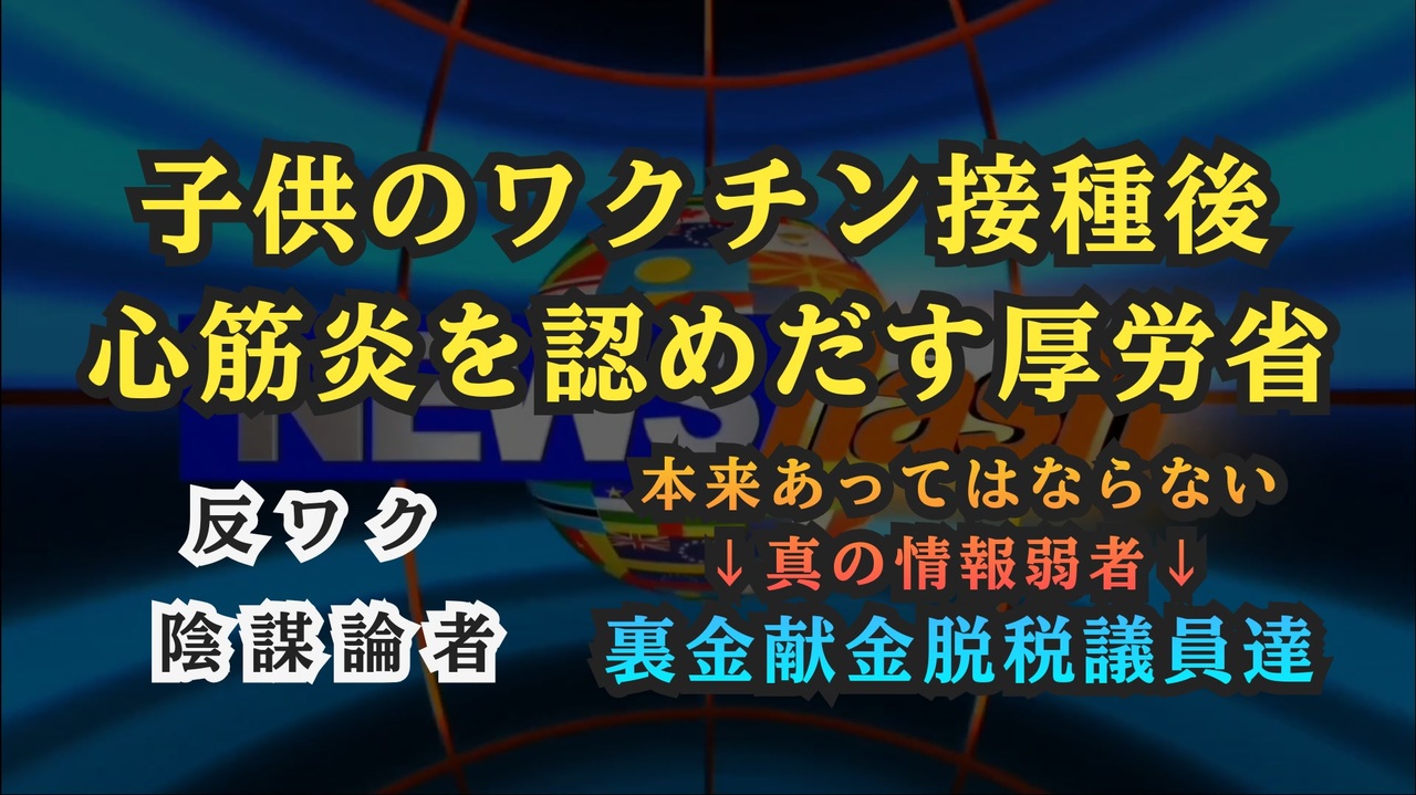 心筋炎<br>全然気にすることはないそうです。<br>#デマ太郎<br><br><a href="https://t.co/xDzGmz3AlK" target="_blank" rel="noopener nofollow">https://t.co/xDzGmz3AlK</a><br><br><br>日本でも報道されていました<br>ワクチン接種後の心筋炎などの警戒度が「重大な副反応」に引き上げられた<br><a href="https://t.co/y8TVLcn29O" target="_blank" rel="noopener nofollow">https://t.co/y8TVLcn29O</a> <a href="https://t.co/pX6P5wdSqC" target="_blank" rel="noopener nofollow">https://t.co/pX6P5wdSqC</a><br>記事<br><a href="https://www3.nhk.or.jp/news/html/20211204/k10013374401000.html" target="_blank" rel="noopener nofollow">https://www3.nhk.or.jp/news/html/20211204/k10013374401000.html</a><br><br><br>4月15日 厚生労働省公表<br>予防接種健康被害救済制度<br>新型コロナワクチン分<br><br>今回119件が認定、合計認定数は6,914件に<br><br>認定例の一部<br>12才 男 急性散在性脳脊髄炎<br>14才 女 蕁麻疹<br>14才 女 脳静脈洞血栓症、頭蓋内出血、矢状静脈洞血栓症<br>15才 男 急性心膜心筋炎<br>16才 女 急性アレルギー反応、食欲不振<br>17才 女 難治性ネフローゼ症候群の再発<br>19才 男 嗅覚味覚障害<br>20才 女 脱力感、左上肢・両下肢のしびれ<br>20才 女 てんかん発作<br>22才 女 急性膵炎<br>22才 男 急性心膜心筋炎<br>22才 男 心膜心筋炎<br>23才 男 急性心膜炎<br>25才 男 急性心膜心筋炎<br><br><a href="https://twitter.com/JINKOUZOUKA_jp/status/1779891018168672730?t=vsmp-QZq0Le_V-Iqxh_FEw&s=19" target="_blank" rel="noopener nofollow">https://twitter.com/JINKOUZOUKA_jp/status/1779891018168672730?t=vsmp-QZq0Le_V-Iqxh_FEw&s=19</a><br><br><br>コロナワクチン心筋炎注意 <br>厚労省、子どもで2例報告<br>ネット「2例であるわけないだろ!」<br><br><a href="https://twitter.com/TotalWorld1/status/1780152399157772402?t=dAvbP4osozRp8NPw_S2QEw&s=19" target="_blank" rel="noopener nofollow">https://twitter.com/TotalWorld1/status/1780152399157772402?t=dAvbP4osozRp8NPw_S2QEw&s=19</a><br><br><br>新型コロナウイルス ワクチン 心筋炎 子供の心筋炎 子供へのワクチン接種 ワクチン接種中止 ワクチン副反応 ワクチン副作用 ワクチン薬害 ワクチン被害 重大な副反応 厚労省 河野太郎 デマ太郎 予防接種健康被害救済制度 認定数 ファイザー モデルナ <br><br><br><br />著作権、肖像権に配慮して作成しております。<br><br>◆気になったニュースの台本!?<br>メモ代わりに作った台本をそのままあげてます<br><a href="https://keiichiro8140.hatenablog.com/." target="_blank" rel="noopener nofollow">https://keiichiro8140.hatenablog.com/.</a><br><br><br>ここからはシリーズ紹介<br><br><br>◆ ワクチン解毒・デトックス<br><a href="https://x.gd/fZweg" target="_blank" rel="noopener nofollow">https://x.gd/fZweg</a><br><br>◆ウイリアム・マキス博士のがん治療(イベルメクチン・フェンベンダゾール等)<br><a href="https://x.gd/AtFYS" target="_blank" rel="noopener nofollow">https://x.gd/AtFYS</a><br><br>◆予防接種健康被害救済制度<br><a href="https://x.gd/0xK9x" target="_blank" rel="noopener nofollow">https://x.gd/0xK9x</a><br><br>◆気になったニュース #1501~<br><br>◆ 【ショートver】気になったニュース<br><a href="https://x.gd/7MxXC" target="_blank" rel="noopener nofollow">https://x.gd/7MxXC</a><br><br>◆ 気になったニュース #1001~<br><a href="https://x.gd/Lp8gv" target="_blank" rel="noopener nofollow">https://x.gd/Lp8gv</a><br><br>◆ 気になったニュース #501~<br><a href="https://x.gd/EmbS4" target="_blank" rel="noopener nofollow">https://x.gd/EmbS4</a><br><br>◆ 気になったニュース #1~#500<br><a href="https://x.gd/uPhNb" target="_blank" rel="noopener nofollow">https://x.gd/uPhNb</a><br><br>◆ X(旧Twitter)・テレグラムで気になった情報<br><a href="https://x.gd/YG6FT" target="_blank" rel="noopener nofollow">https://x.gd/YG6FT</a><br><br>◆ 日比谷5万人パレードデ⚪生放送アーカイブ動画<br><a href="https://x.gd/3CHJv" target="_blank" rel="noopener nofollow">https://x.gd/3CHJv</a><br><br>◆日比谷5万人パレード⚪モのマイリスト作ってみました<br><a href="https://nico.ms/mylist/76828848?ref=sp_other" target="_blank" rel="noopener nofollow">https://nico.ms/mylist/76828848?ref=sp_other</a><br><br>◆3.30 令和の百姓⚪⚪<br><a href="https://www.nicovideo.jp/series/511791?ref=garage_share_other" target="_blank" rel="noopener nofollow">https://www.nicovideo.jp/series/511791?ref=garage_share_other</a><br><br>◆ 及川幸久さんの【XNEWS】シリーズ<br><a href="https://x.gd/3k78K" target="_blank" rel="noopener nofollow">https://x.gd/3k78K</a><br><br>◆これまでの動画<a href="https://x.gd/sPXoJ" target="_blank" rel="noopener nofollow">https://x.gd/sPXoJ</a><br><br>◆もしも(BAN)の時のためのマイリンク集<a href="https://lit.link/K-16_News44" target="_blank" rel="noopener nofollow">https://lit.link/K-16_News44</a><br><br>